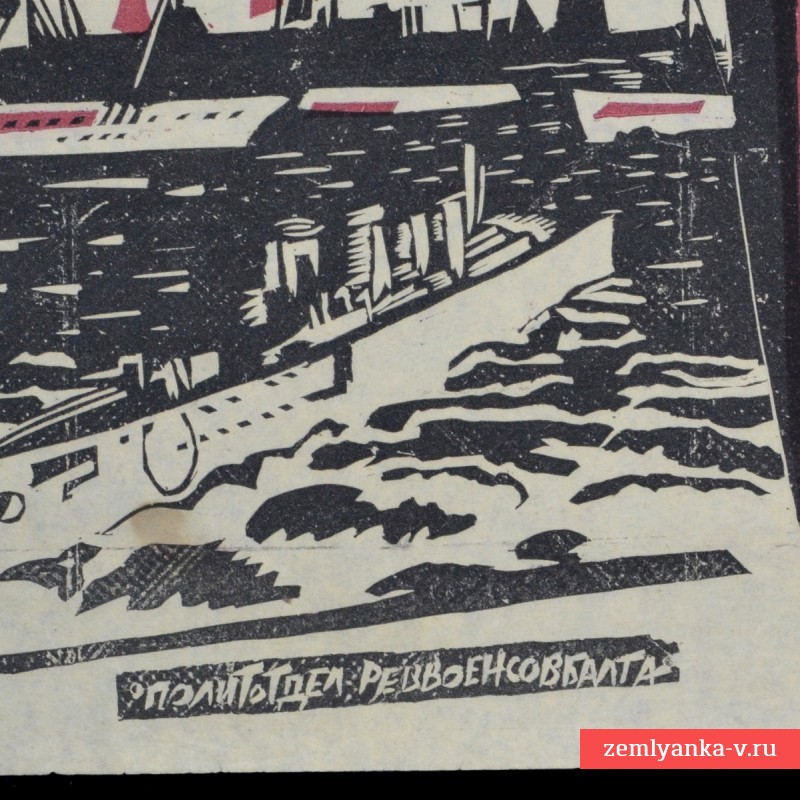 Оригинальный и крайне редкий большеформатный плакат в очень хорошем коллекционном состоянии. Издание политотдела РевВоенСоветСовБалта. Автор В. В. Лебедев. Размер 665*485 мм. Гарантия подлинности.