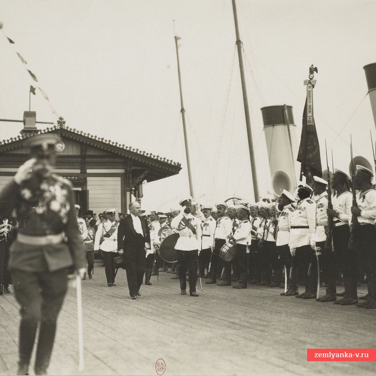 Оригинальный флажок, гирляндами из которых украшались улицы Петербурга во время визита французского президента Пуанкаре в Россию в 1914 году. Типографская печать красками. Данный визит был ключевым дипломатическим событием накануне Первой мировой войны, подтвердил прочность франко-русского союза (Антанты) в ответ на обострение отношений с Германией и Австро-Венгрией. Визит включал переговоры с Николаем II в Петергофе. Размер 125*195 мм. Отпечатан товариществом «Печатня С. П. Яковлева». Гарантия подлинности.