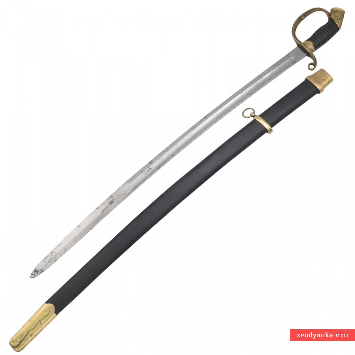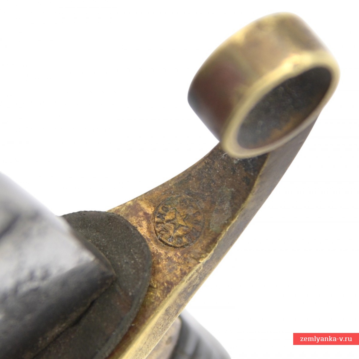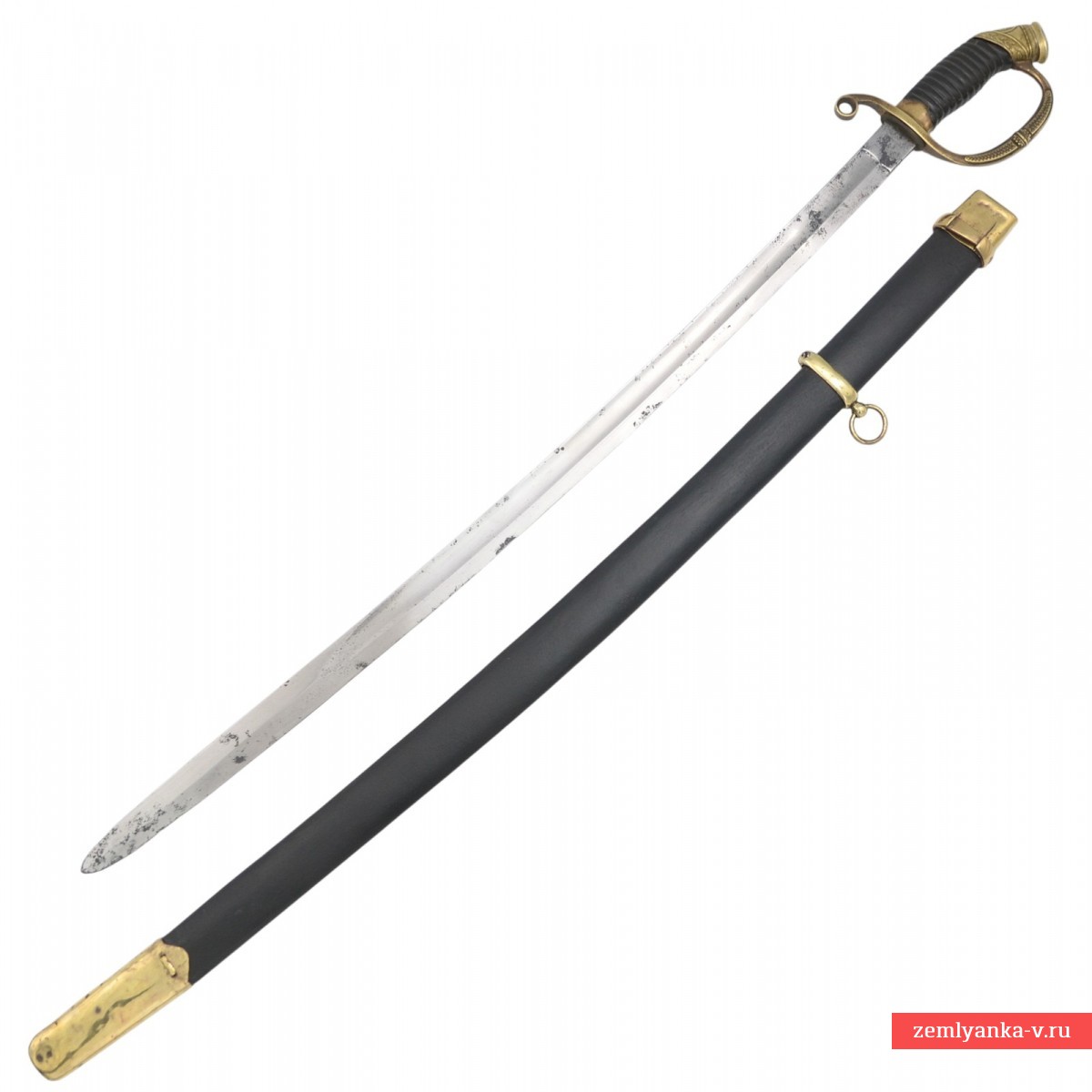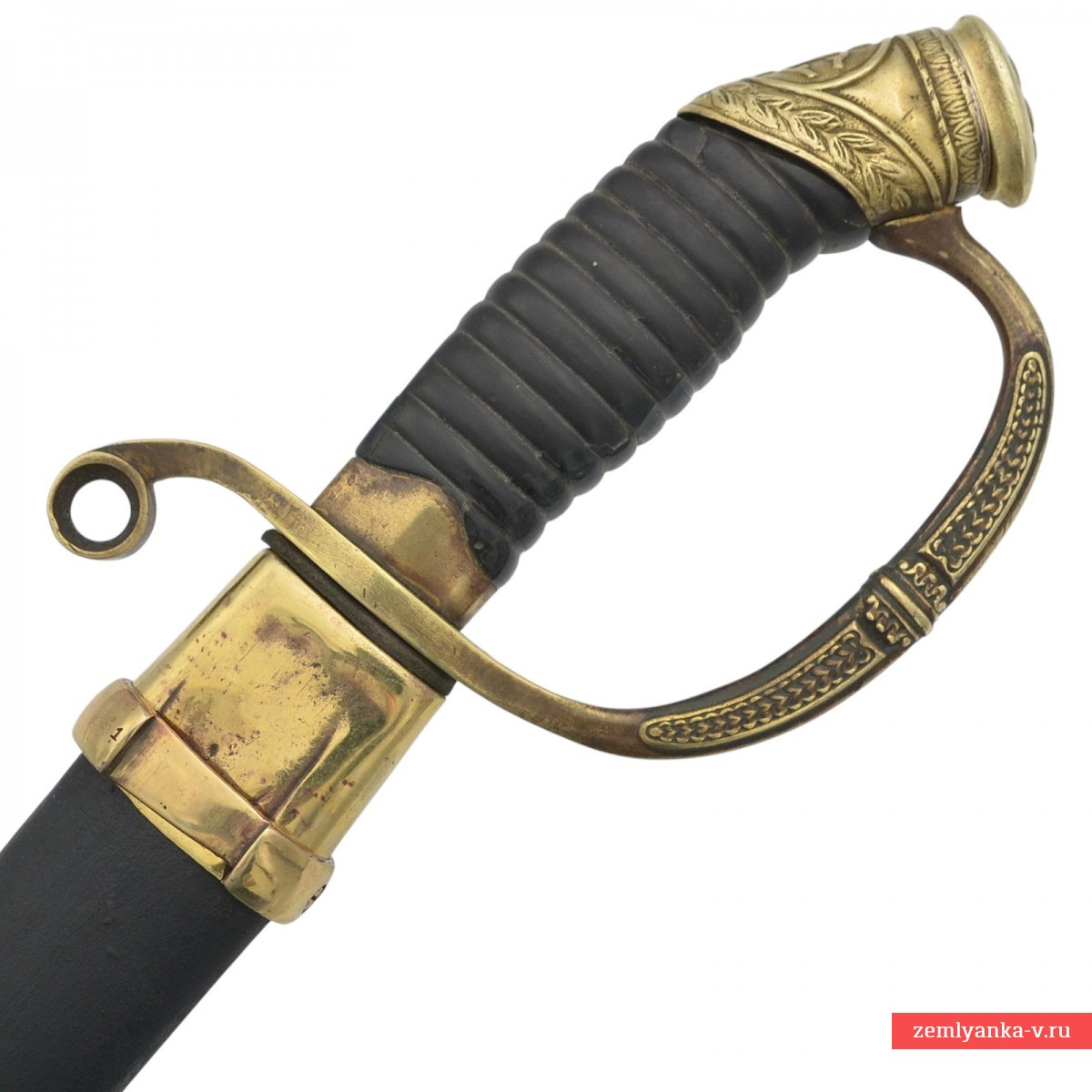 Ножны деревянные, обтянутые кожей, тонированной в черный цвет; прибор ножен латунный, состоит из устья со скобой, обоймицы с подвижно закрепленным кольцом и наконечника в виде удлиненного стаканчика.