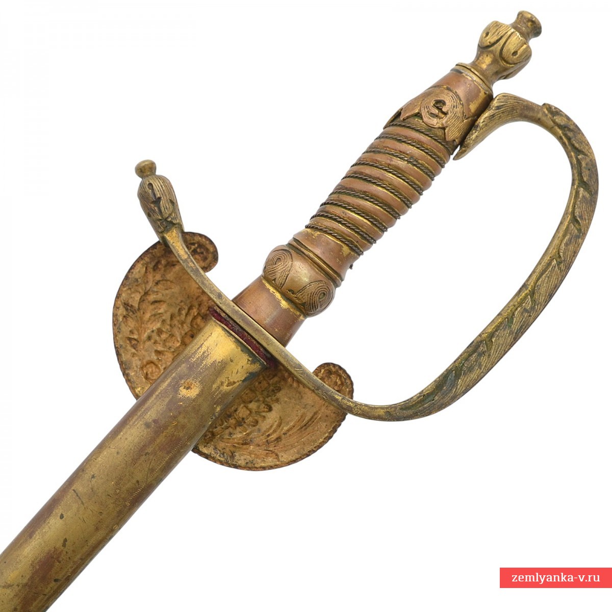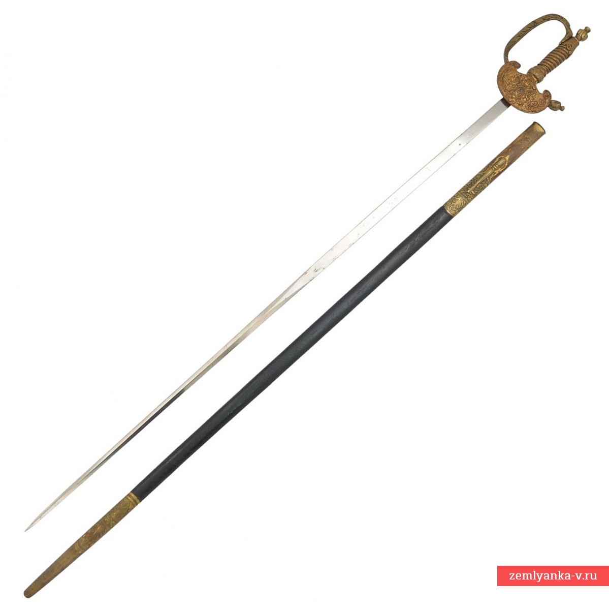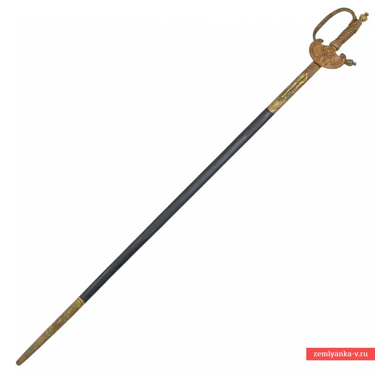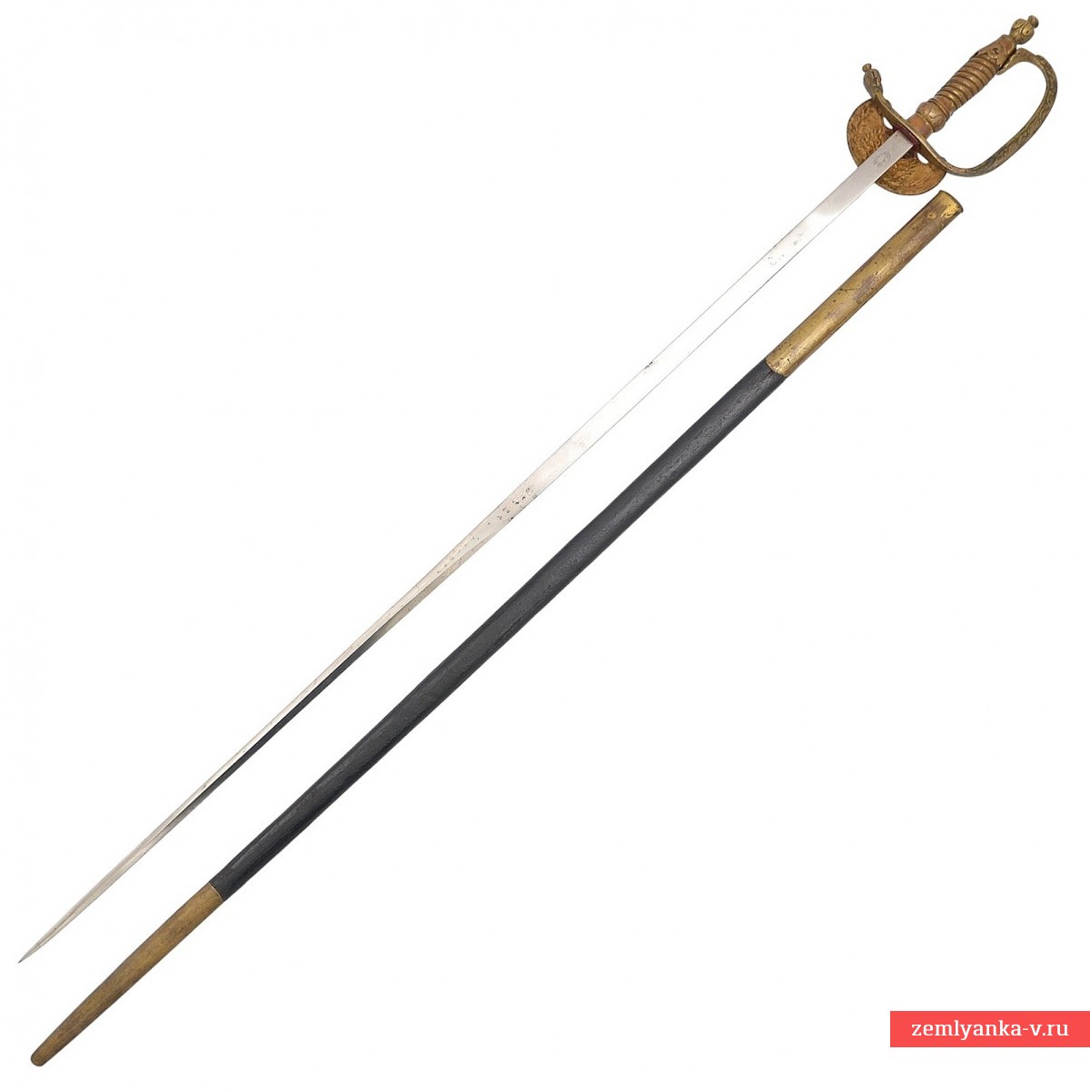 Клинок стальной, прямой, без долов; на половину длины прямоугольный в сечении, в другой половине ромбического сечения. На основании клинка нанесена надпись «W & Co SOILNGEN» — клеймо немецкой фирмы – производителя «Wester & Со» в Золингене. Эфес состоит из рукояти и латунной гарды. Рукоять латунная, со спиралевидными желобками, по которым перевита кручёной латунной проволокой. Навершие латунное, рельефное, выполнено в форме вазы. Гарда с одной защитной D-образной дужкой, плавно переходит в крестовину. Дальний конец крестовины утолщённый, рельефный. Дужка гарды и крестовина украшены рельефным растительным орнаментом. На перекрестье с лицевой стороны располагается декоративный щиток, на который помещено накладное изображение государственного герба Российской Империи образца 1857 года. Ножны деревянные, обтянутые кожей с латунным прибором, состоящим из устья с длинным шпеньком и наконечника. Прибор ножен украшен рельефными растительными орнаментами.