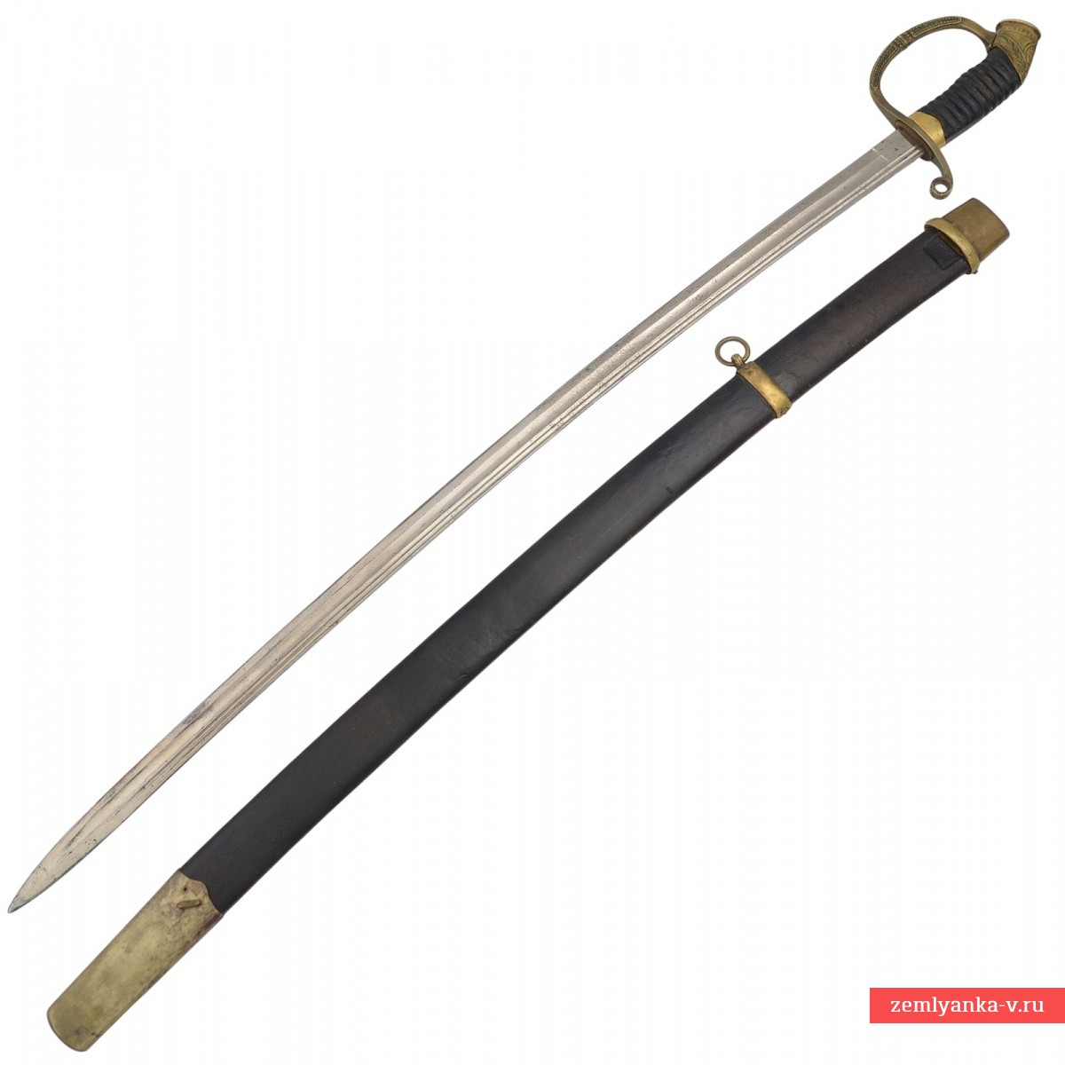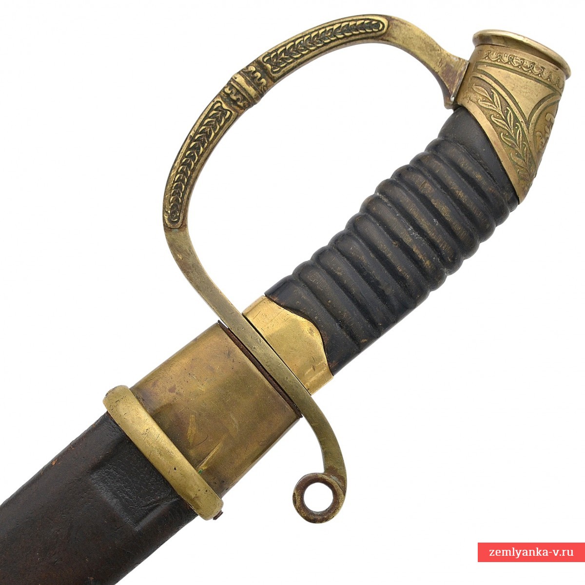 Ножны деревянные, обтянутые кожей; прибор ножен латунный, состоит из устья со скобой, обоймицы с подвижно закрепленным кольцом и наконечника в виде удлиненного стаканчика.