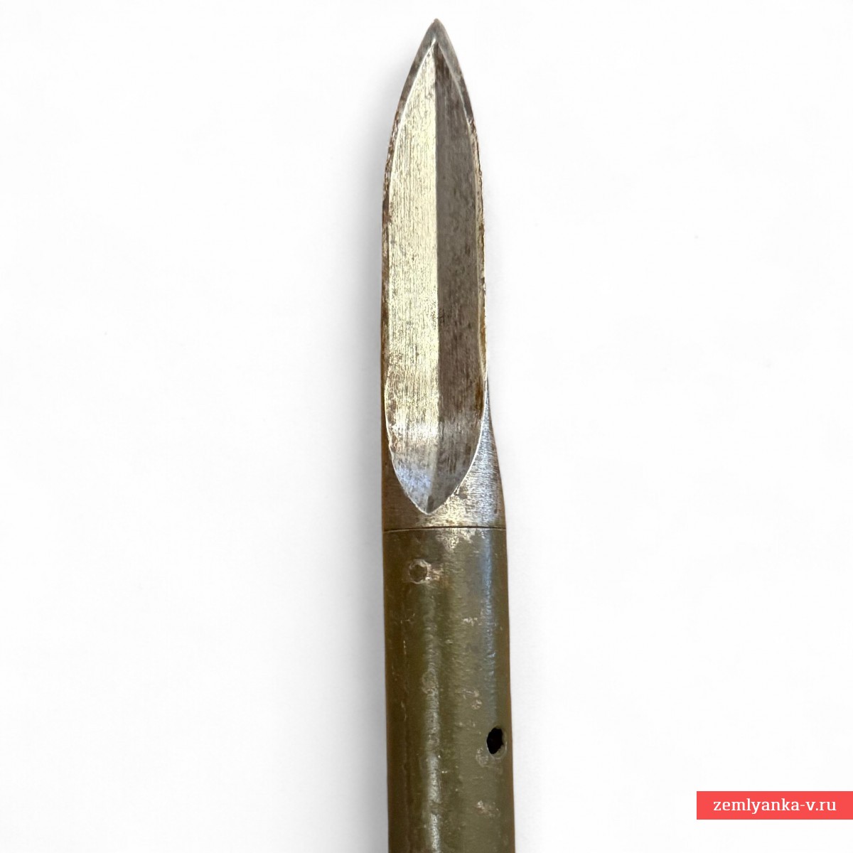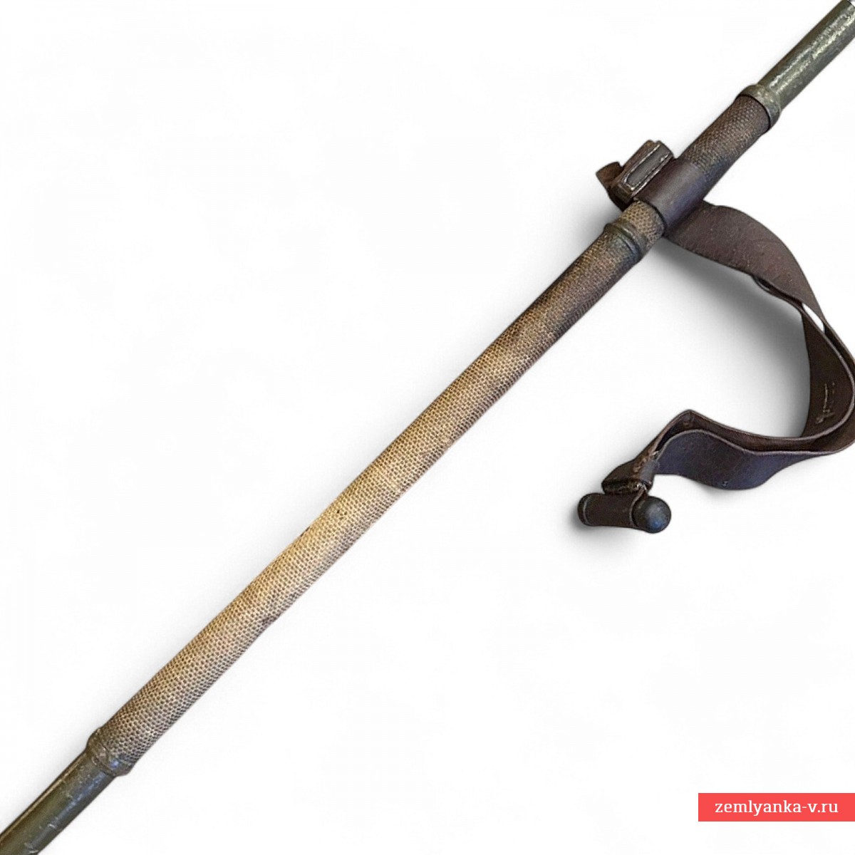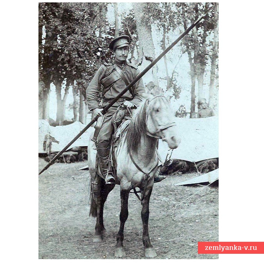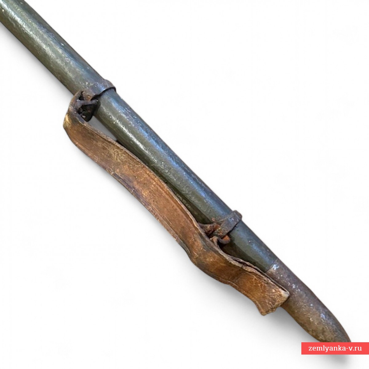 Данный экземпляр полностью комплектен и прекрасно сохранился. Его интересная особенность – наличие в верхней части древка отверстия под приспособление для крепления флюгера системы полковника Гулькевича. Приспособление представляло собой короткий стальной пруток, верхний конец которого был загнут под прямым углом. Сбоку на нем имелись стальные шпеньки для пристегивания флюгера. Когда флюгер надевали на пику, верхний загнутый конец приспособления вставлялся в отверстие в древке, а нижний прихватывался к древку ремнем с пряжкой. Приспособление Гулькевича было принято в самом начале 1914 г., и к началу мировой войны далеко не все пики, имевшиеся в войсках, успели переделать под него путем сверления отверстия.