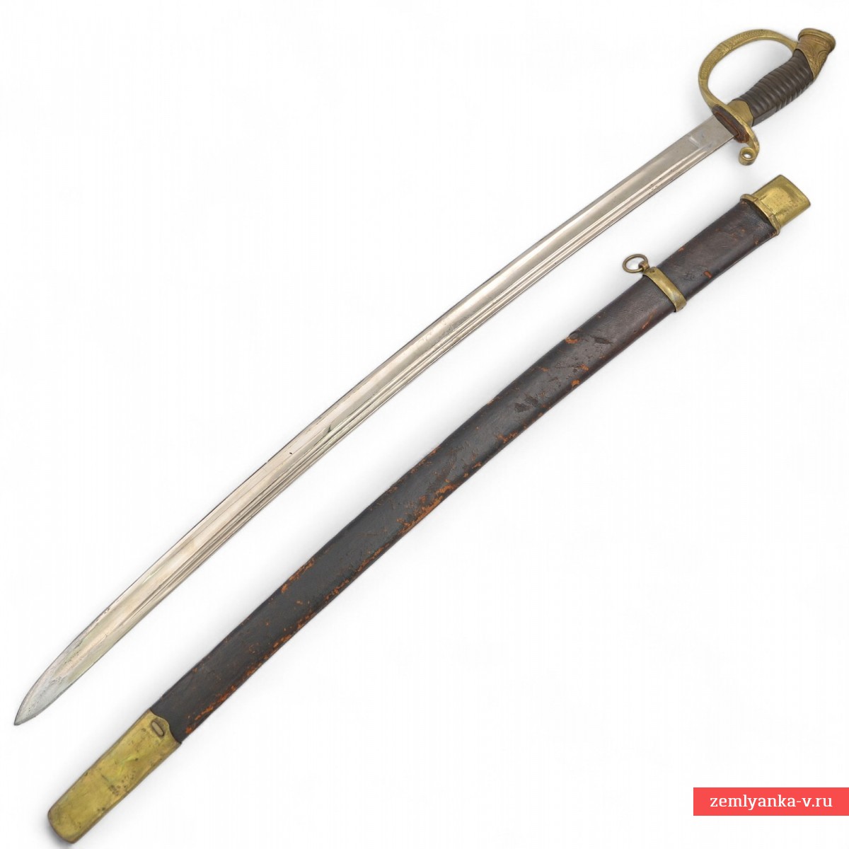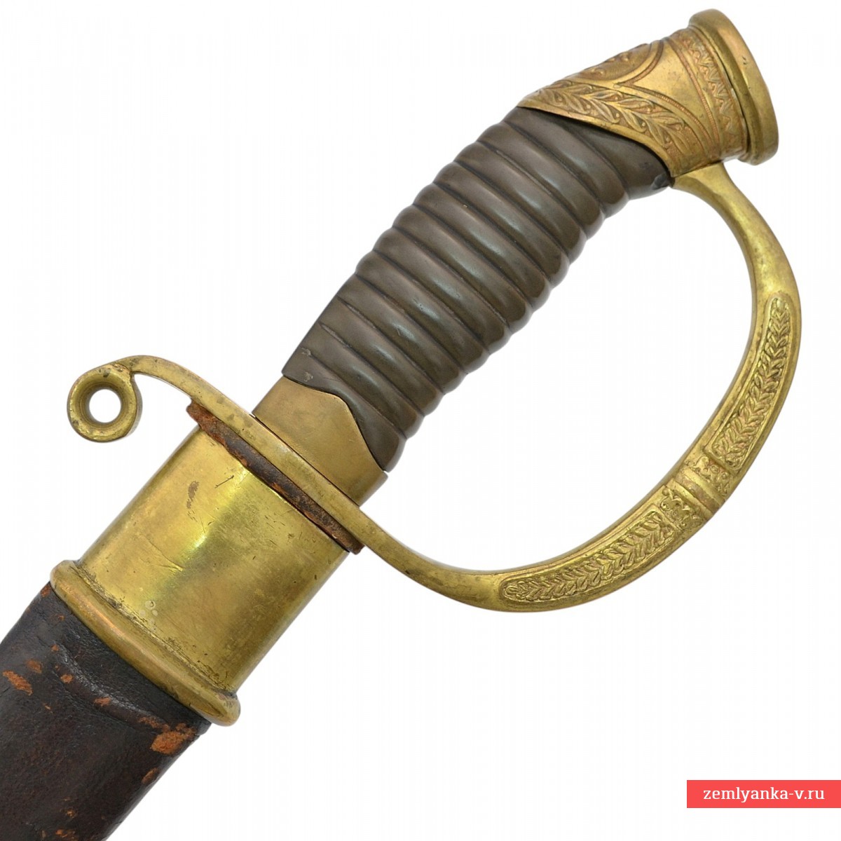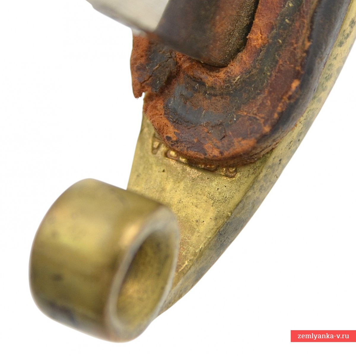Ножны деревянные, обтянутые кожей; прибор ножен латунный, состоит из устья со скобой, обоймицы с подвижно закрепленным кольцом и наконечника в виде удлиненного стаканчика.