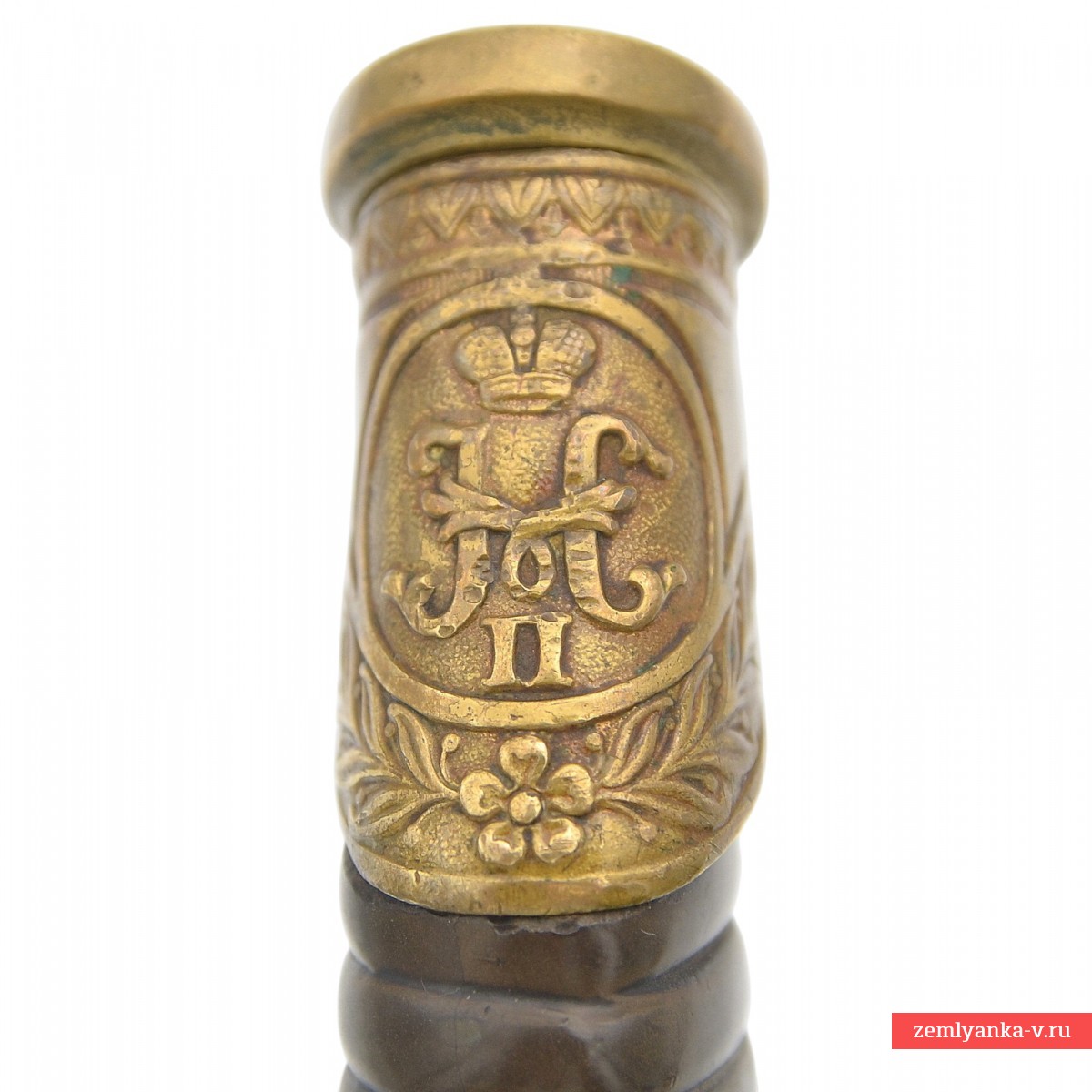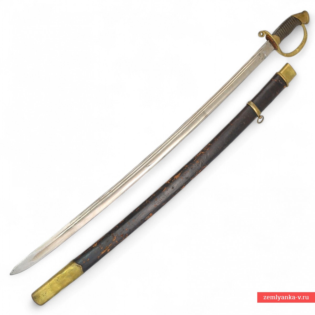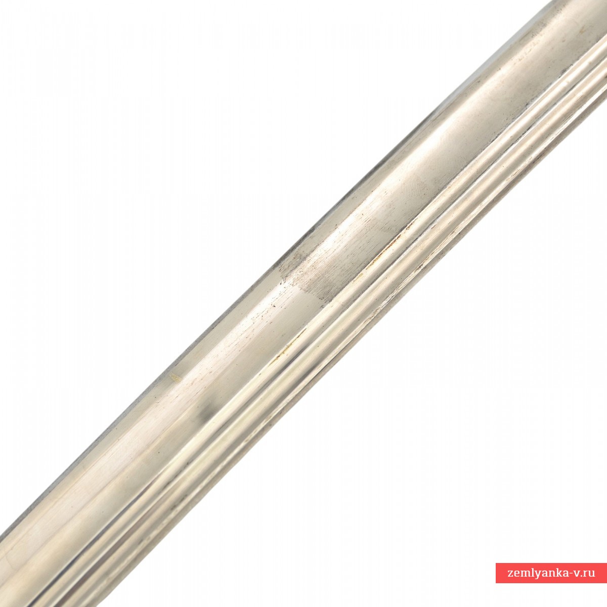Ножны деревянные, обтянутые кожей; прибор ножен латунный, состоит из устья со скобой, обоймицы с подвижно закрепленным кольцом и наконечника в виде удлиненного стаканчика.