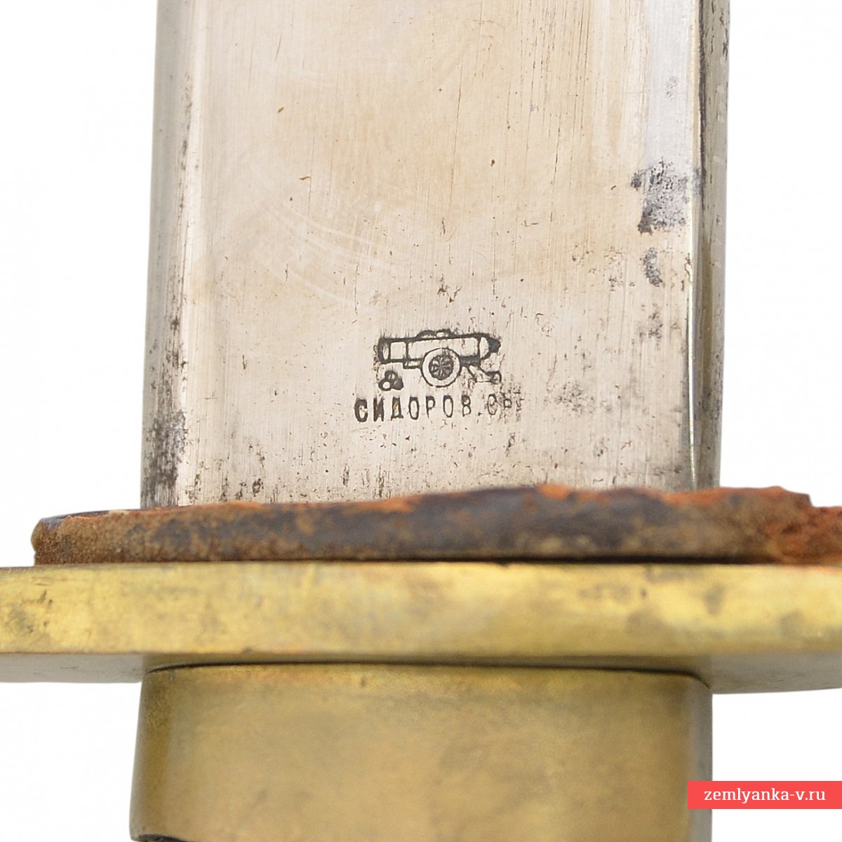 предмет находится в неплохом коллекционном состоянии. Местечковые следы коррозии на клинке. Царапины и утраты кожи на ножнах. Временная патина и следы бытования на эфесе и приборе ножен.