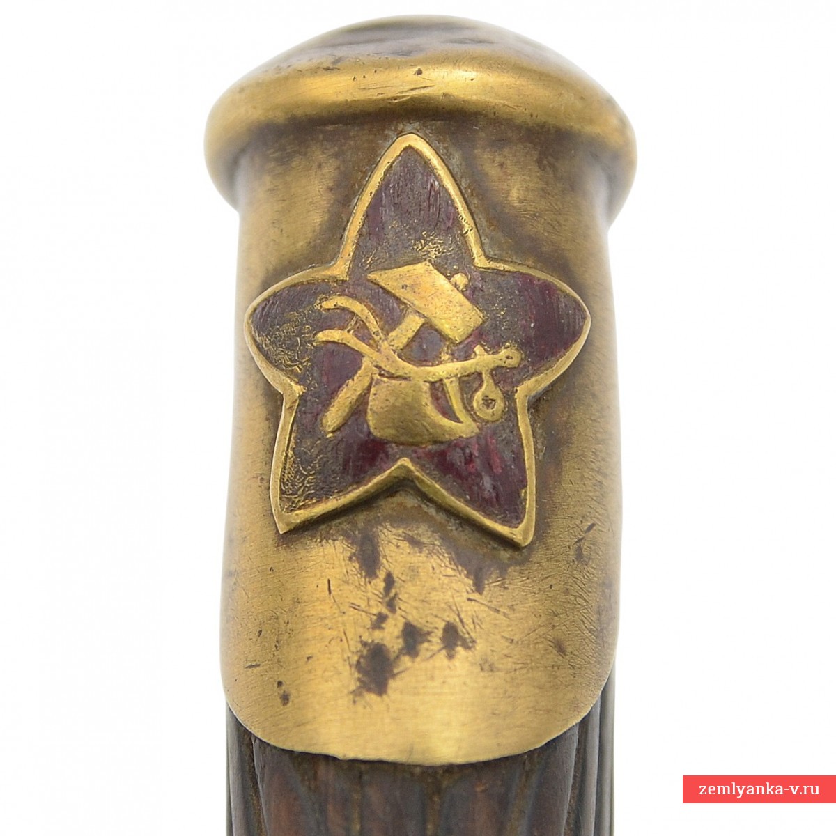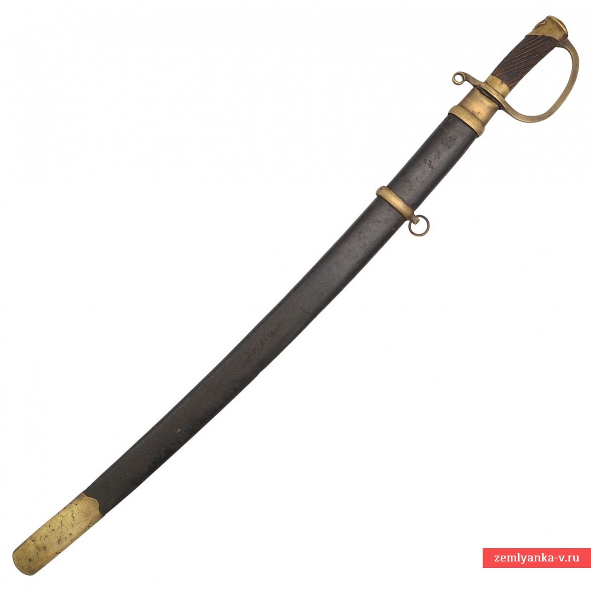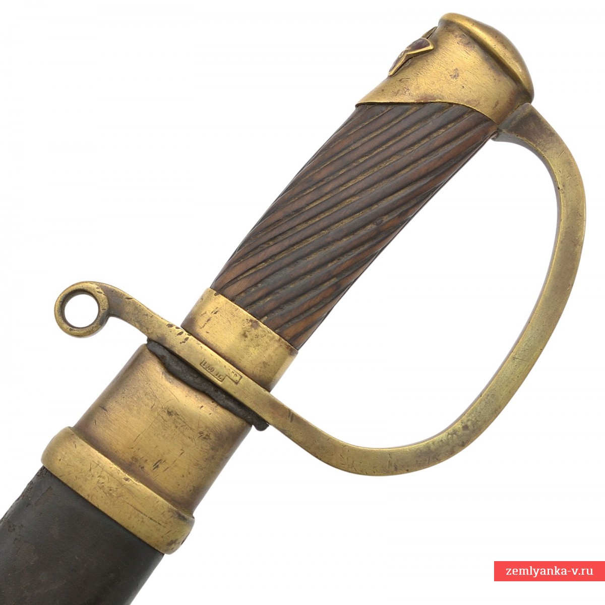 Клинок стальной, незначительной кривизны, однолезвийный, с одним широким долом с обеих сторон. Боевой конец двулезвийный. Эфес состоит из рукояти с головкой и латунной гарды. Вверху на рукояти фигурная латунная втулка, сверху на ней овальная, выпуклая головка. Хвостовик клинка на головке рукояти стянут винтом. В торце головки установлена небольшая звезда обрю 1918 года. Размеры звезды говорят об ее заказном изготовлении, т.к. идентичные кокарды, как правило, имеют существенно большие размеры. Внизу рукояти латунная втулка. Гарда образована передней дужкой, отходящей от внешней части рукояти и плавно переходящей в крестовину. Конец крестовины имеет отверстие для темляка, слегка загнут вниз и закруглён. Ножны деревянные, обтянуты кожей, с латунным прибором, состоящим из устья со скобой, обоймицы с подвижным кольцом для портупеи и наконечника.
