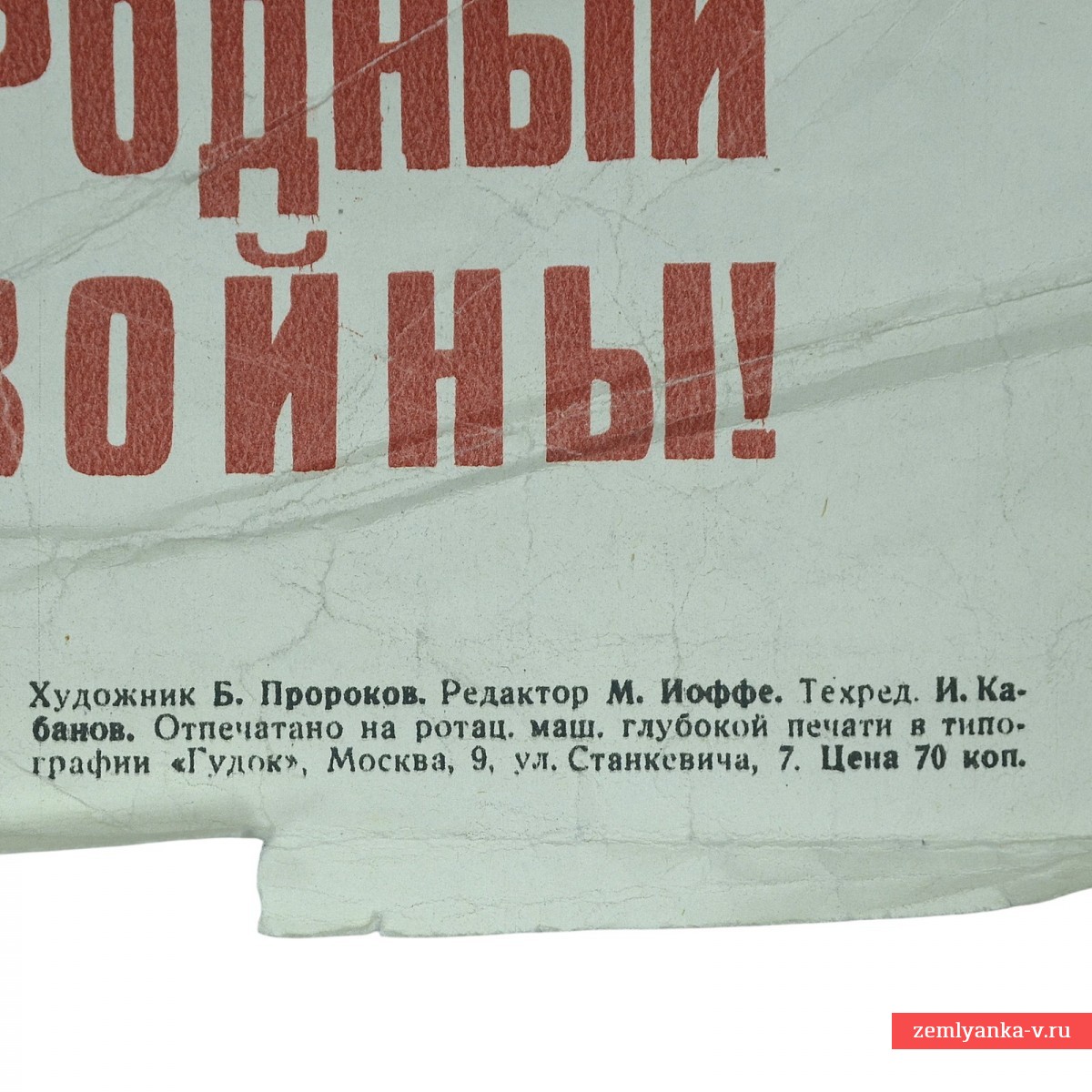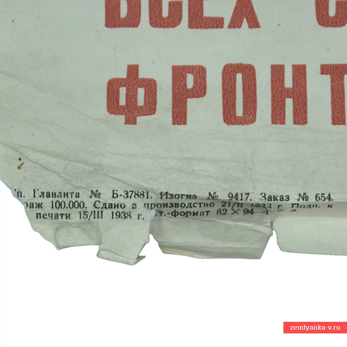 Плакат был создан в преддверии Второй мировой войны, на фоне растущей фашистской угрозы в Европе, включая гражданскую войну в Испании (1936–1939). Он призывает к объединению трудящихся всего мира против фашизма и войны. Основной текст гласит: «ЕДИНЫЙ АНТИФАШИСТСКИЙ ФРОНТ ПОБЕДИТ!». Внизу расположен призыв: «РАБОЧИЕ, РАБОТНИЦЫ, КРЕСТЬЯНЕ И ТРУДЯЩИЕСЯ ВСЕХ СТРАН! РАСШИРЯЙТЕ И УКРЕПЛЯЙТЕ НАРОДНЫЙ ФРОНТ БОРЬБЫ ПРОТИВ ФАШИЗМА И ВОЙНЫ!». М.-Л.: ОГИЗ-ИЗОГИЗ, 1938 год. Автор Борис Иванович Пророков (1911–1972 гг), советский живописец, график и карикатурист. Выполнен в стиле карикатуры, что было характерно для работ Пророкова того периода. Размер 90*60 см Тираж 100000 экз. Повреждения, загрязнения, сгибы, требует реставрации. Гарантия подлинности.