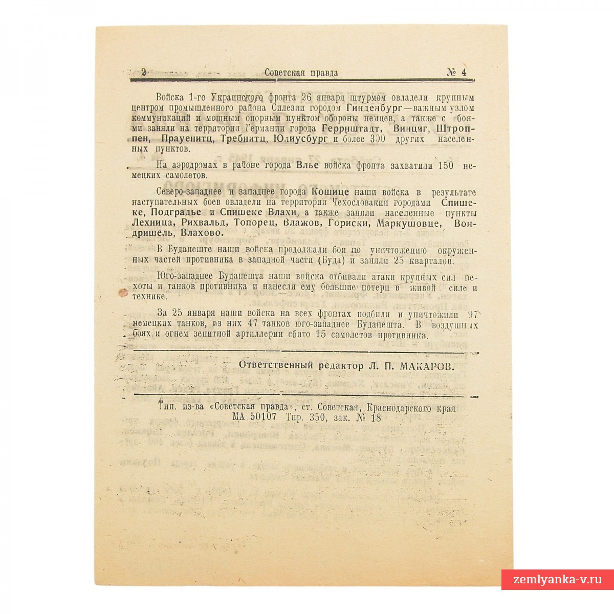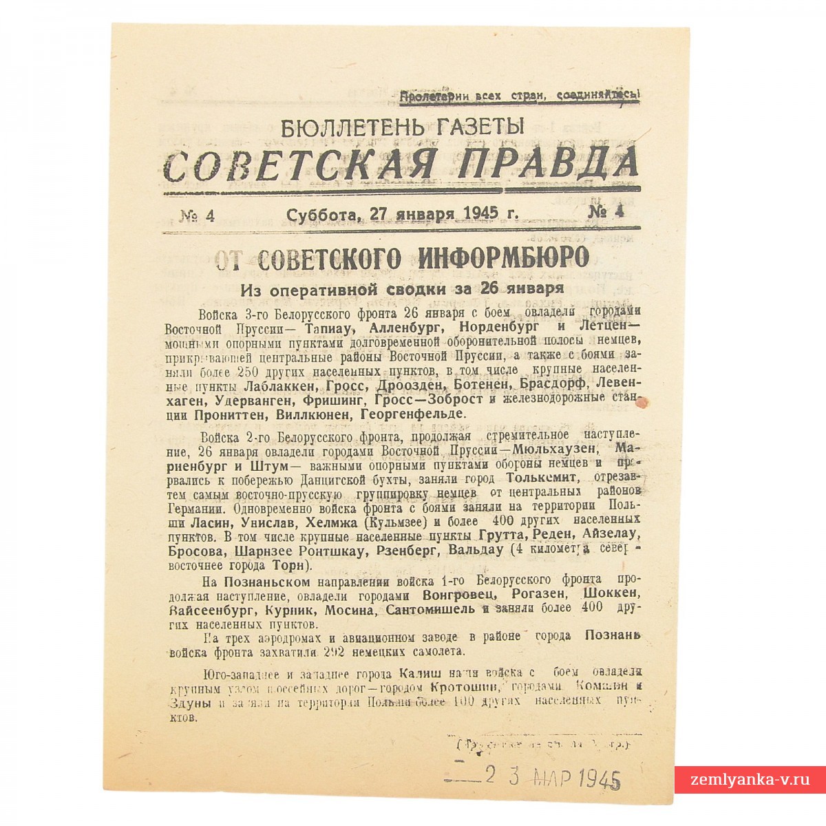 Оригинальный бюллетень в хорошем коллекционном состоянии. Издавался в период Великой Отечественной войны. Гарантия подлинности.