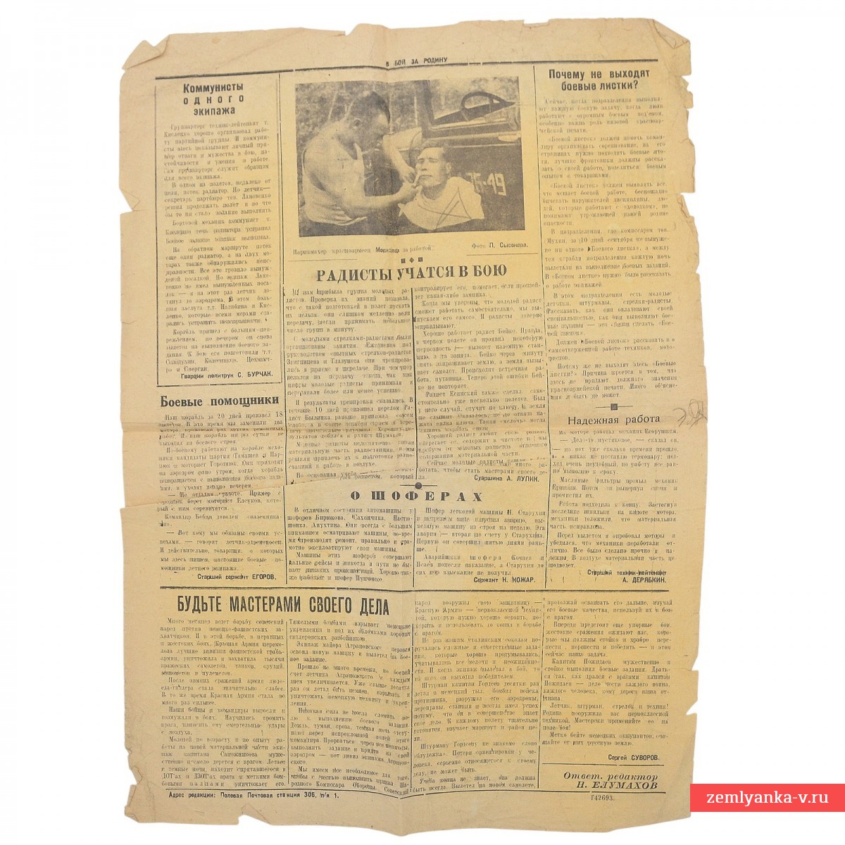 Ежедневная красноармейская газета, издававшаяся для нужд различных фронтов и воинских частей во время Великой Отечественной войны. Четверг, 17 сентября 1942 года. Материалы газеты посвящены военным действиям, в том числе битве за Сталинград, и призывают прилагать все усилия для разгрома врага. Газета была выпущена в разгар Великой Отечественной войны, когда Красная Армия вела ожесточенные бои, включая ключевую Сталинградскую битву. Лозунг «Смерть немецким оккупантам!» широко использовался в агитационных материалах, на плакатах и в названиях партизанских отрядов и бронепоездов того времени для поднятия боевого духа. Формат А3. 2 полосы. Гарантия подлинности.
