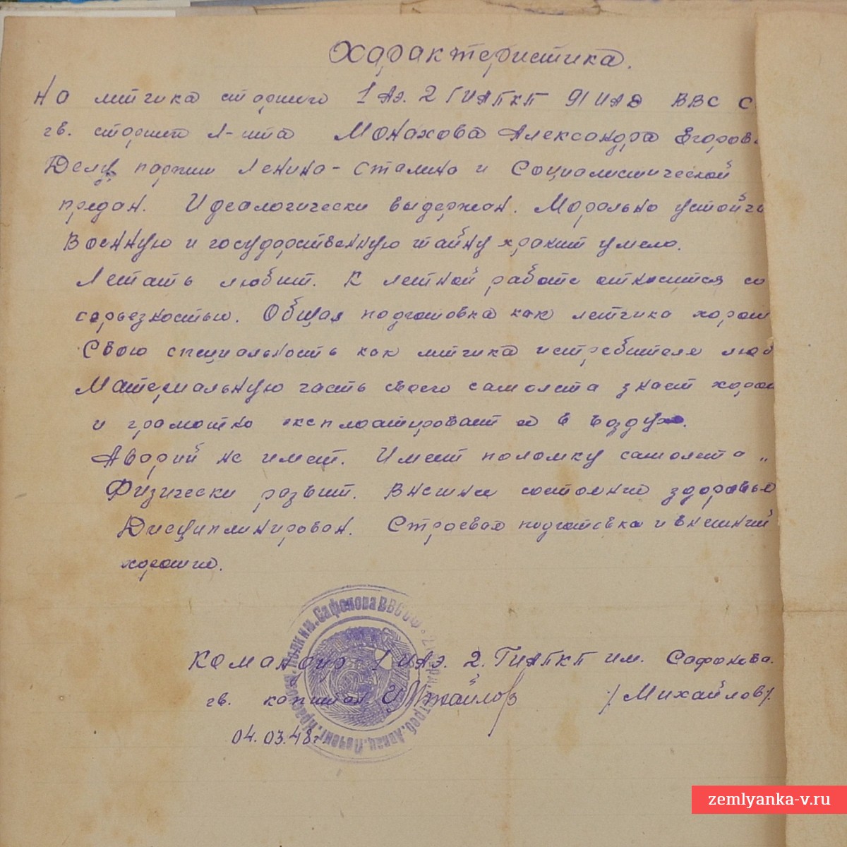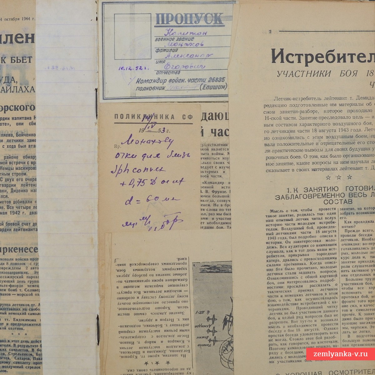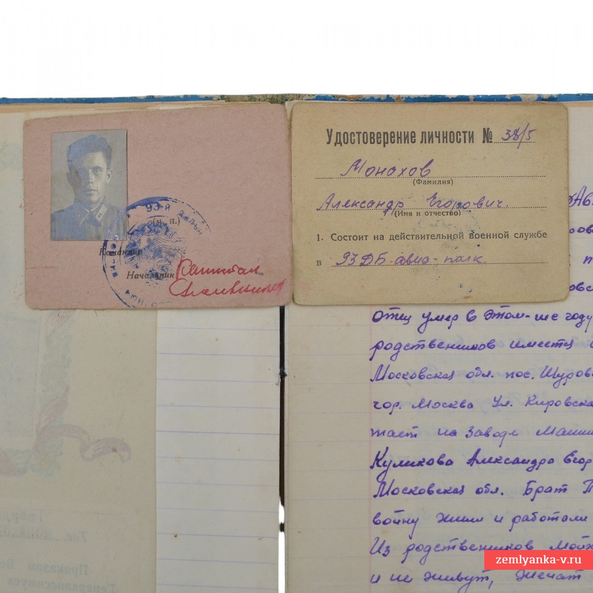 Очень редкий и интересный архив документов военного летчика, включающий в себя: