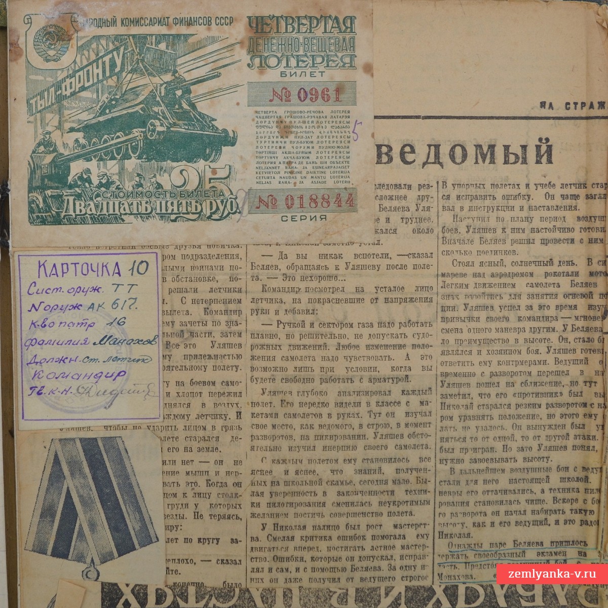 Ценнейший материал по истории авиации Северного фронта, заботливо собиравшийся ее летчиком. Гарантия подлинности.
