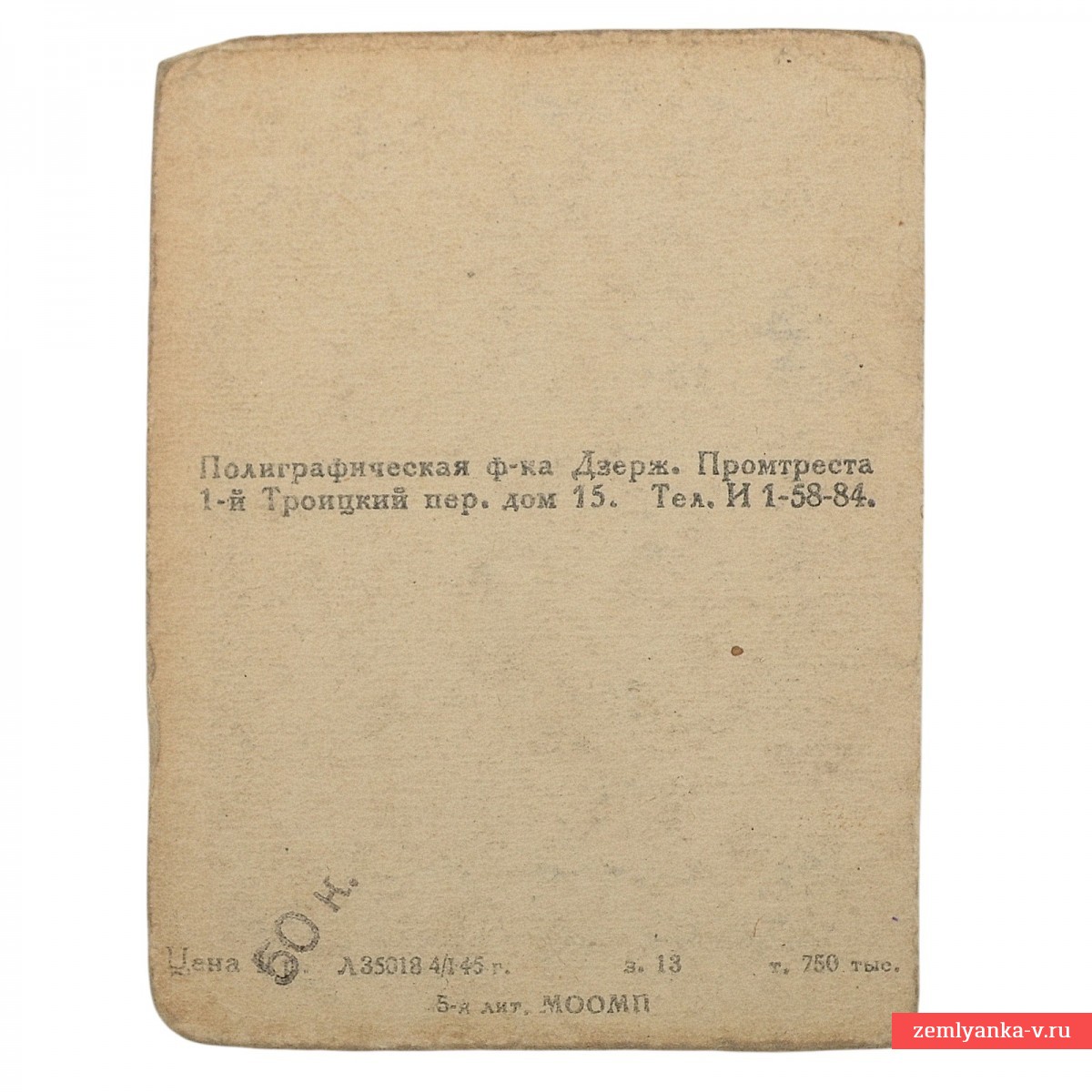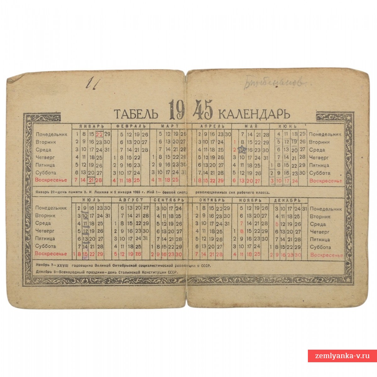 Бумага. Календарь находится в хорошем коллекционном состоянии. На обложке изображен советский красноармеец в каске и плащ-палатке, держащий автомат ППШ. На заднем плане видны городские здания, что подчеркивает тему войны и победы. Календарь несет ярко выраженный агитационный характер. 1945 год стал переломным в истории XX века, ознаменовавшим окончание Второй мировой войны. В подобных красноармейских календарях публиковались материалы о защите социалистического отечества, о создании Красной Армии, о советском патриотизме и воинской дисциплине. Размер 74*98 мм. Тираж 750000 экз. Гарантия подлинности.