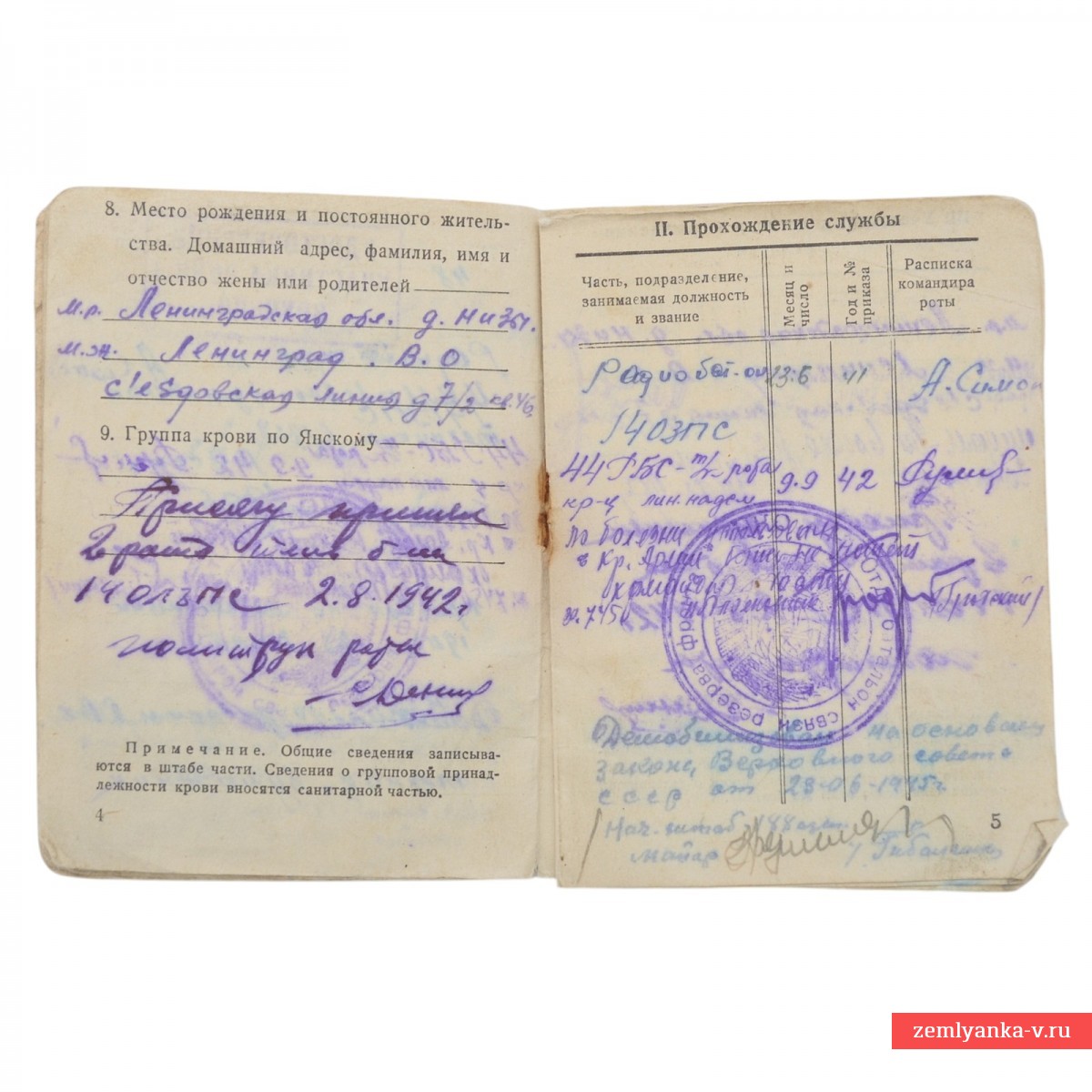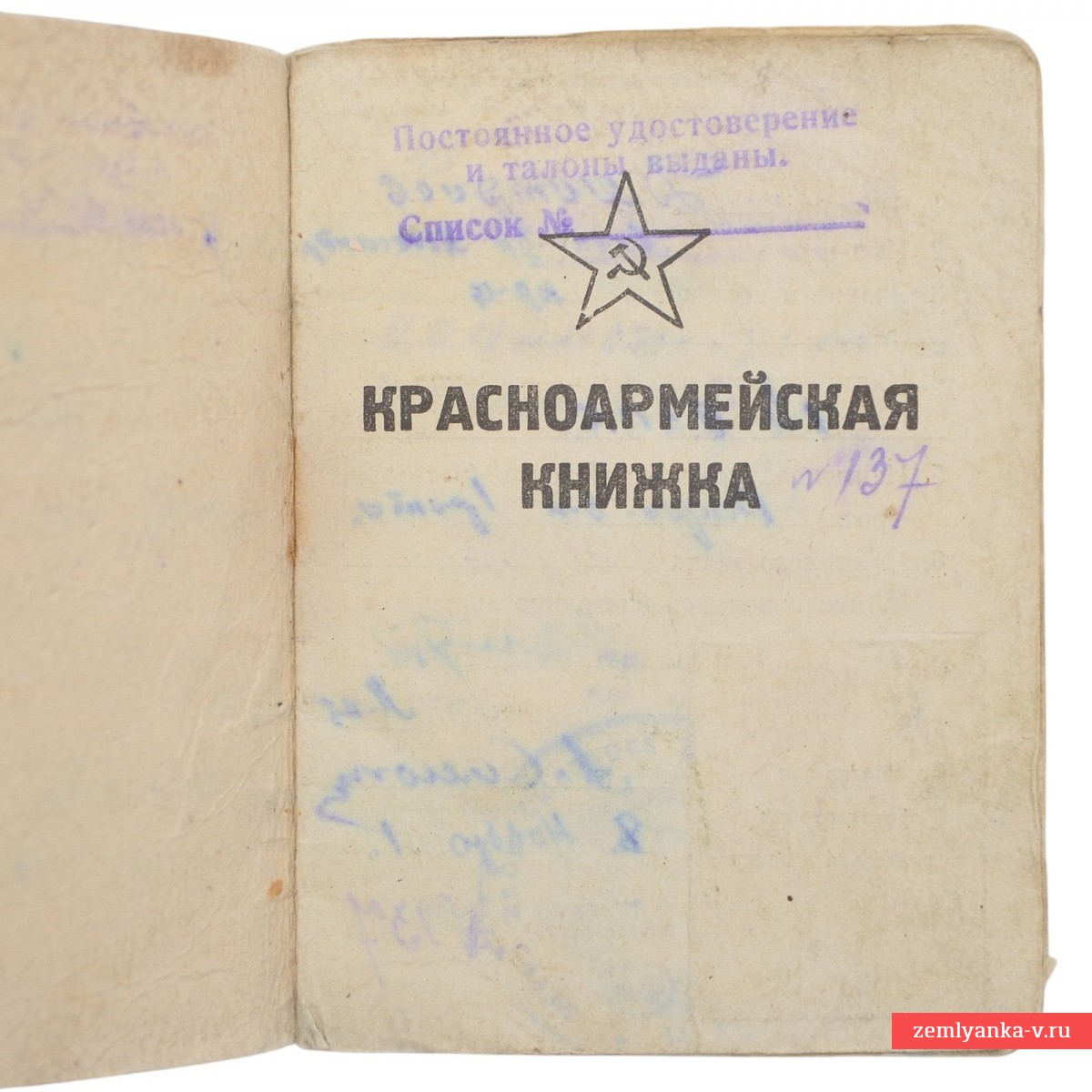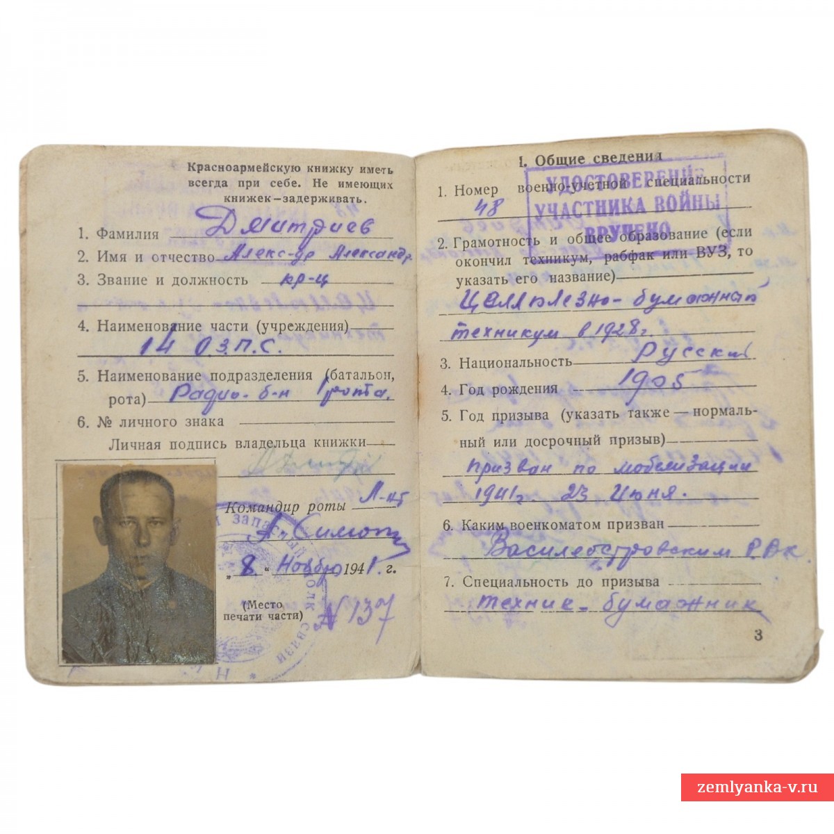 Оригинальная книжка в хорошем коллекционном состоянии. Выдана красноармейцу радиобатальона Дмитриеву А. А. Заполнена полностью, с фото владельца. Без утрат. В комплекте также справка владельца. Гарантия подлинности.