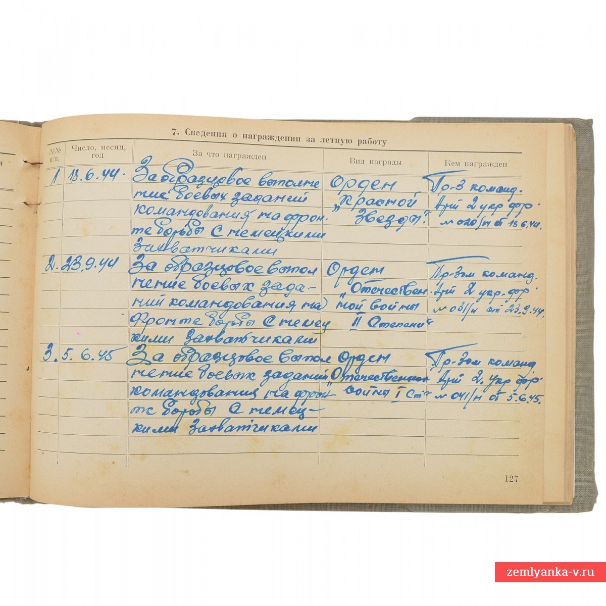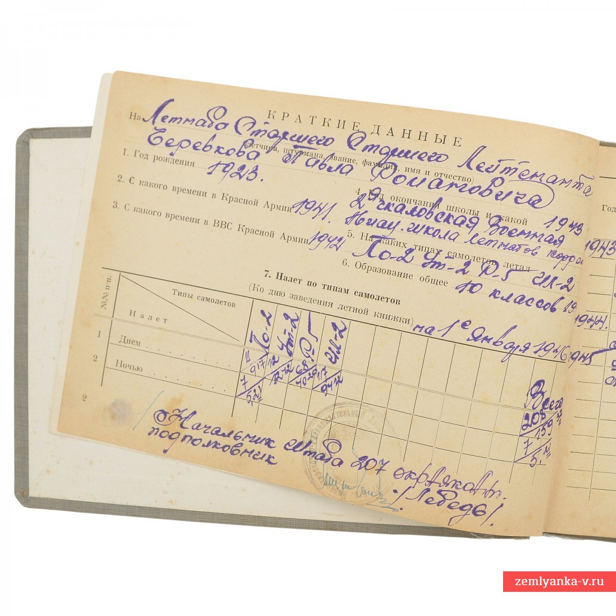 Оригинальная летная книжка в очень хорошем состоянии. Содержит сведения о боевых вылетах, учебе, наградах. Гарантия подлинности.