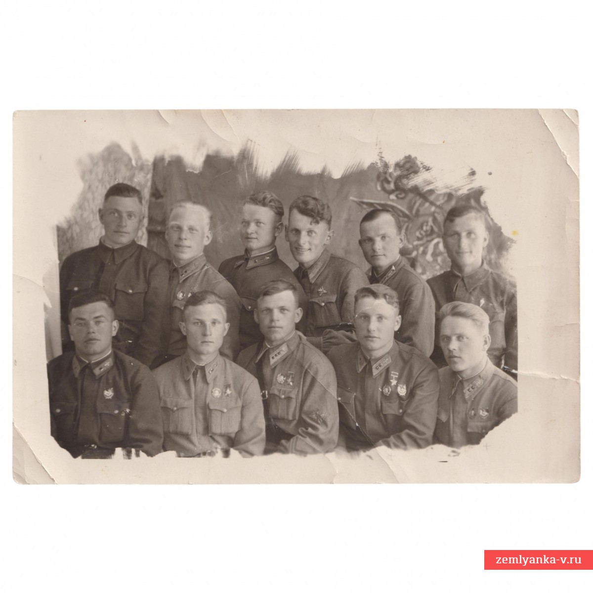 Оригинальный и очень редкий снимок, на котором изображены пилоты ВВС РККА. В центре нижнего ряда трое Героев. Подписан на обороте. Размер 115*182 мм. Гарантия подлинности.