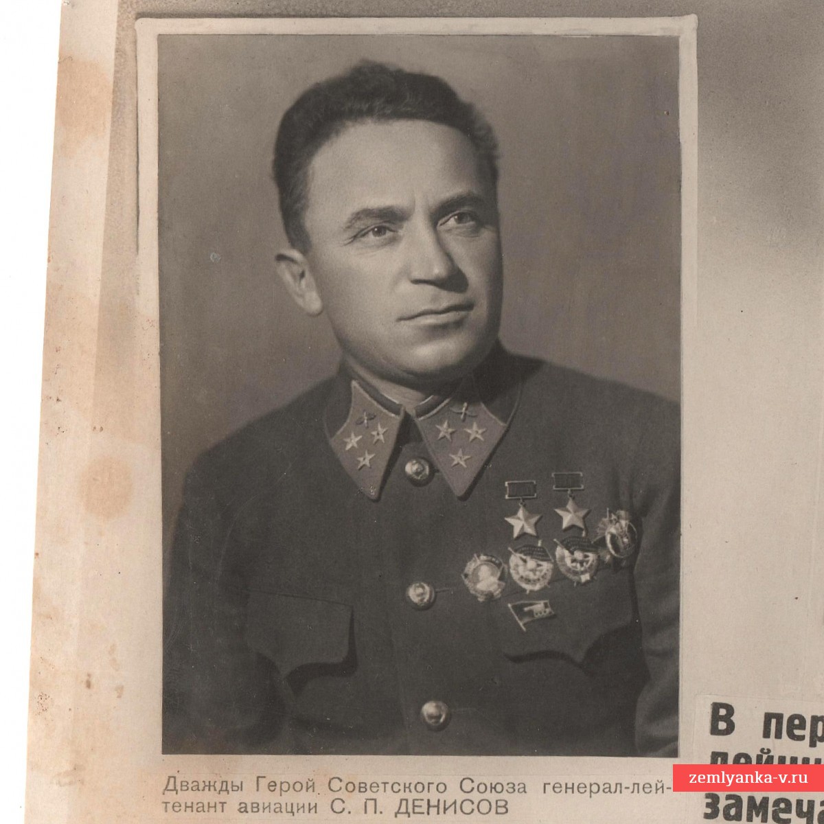 Очень редкий и интересный фото-коллаж, на котором изображены стазу трое дважды Героев Советского союза: С.П. Денисов, Я.В. Смушкевич и Г.П. Кравченко. Фотография сделана к фотовыставке по итогам боев Советско-финской войны 1939-40 гг. Размер 190*260 мм. Оборотная сторона чистая. Гарантия подлинности.