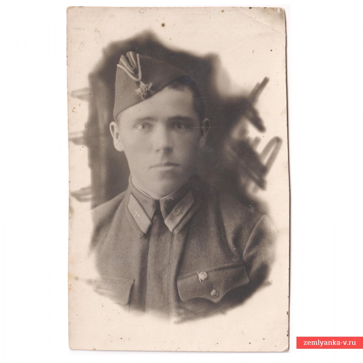 Оригинальный снимок в хорошем коллекционном состоянии. Обращает на себя внимание редкий тип размещения петличных знаков по центру петлицы. Размер 85*133 мм. Гарантия подлинности.