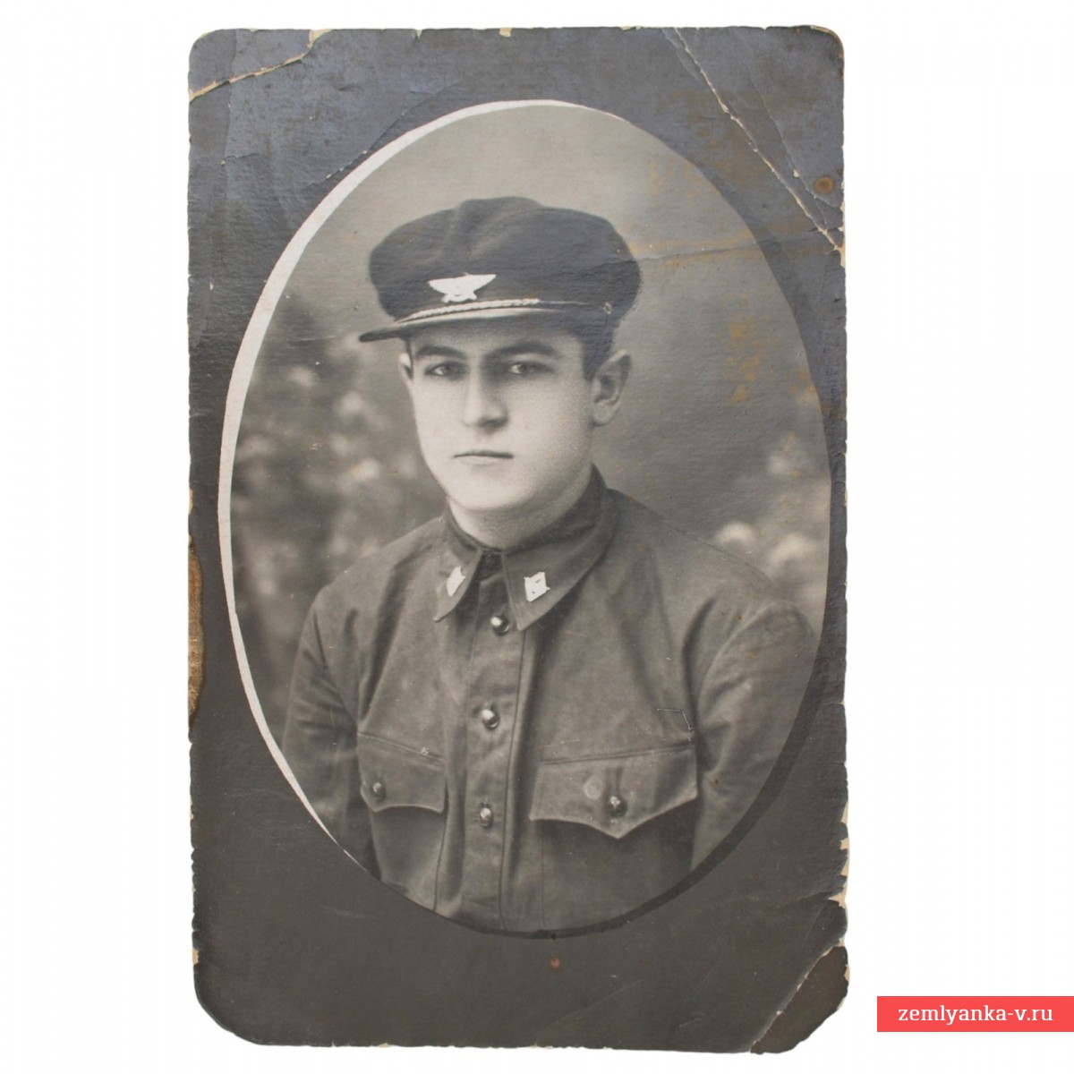Оригинальный снимок в удовлетворительном коллекционном состоянии. Размер 87*133 мм. Согласно приказу по ГВФ №257 от 1 декабря 1932 года устанавливался отличительный знак на воротнике младшего начсостава и переменного состава школ ГВФ из серебряного штампованного ромба с рельефно выступающим поперек него изображением крыльев. На крылья в их средней части накладывались серп и молот. Значки помещались на обоих концах воротника форменной одежды, что хорошо видно на представленном фото.Гарантия подлинности.