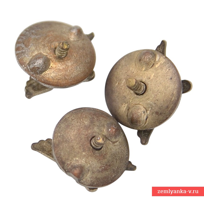 Сталь, морозное серебрение. Лот состоит из трех птичек ГВФ на закрутках. Все эмблемы в практически отличном состоянии. Крайне редкие. Принадлежали основателю отечественной гражданской авиации В.Ю. Юнгмейстеру, приобретена непосредственно в его семье. Гарантия подлинности.