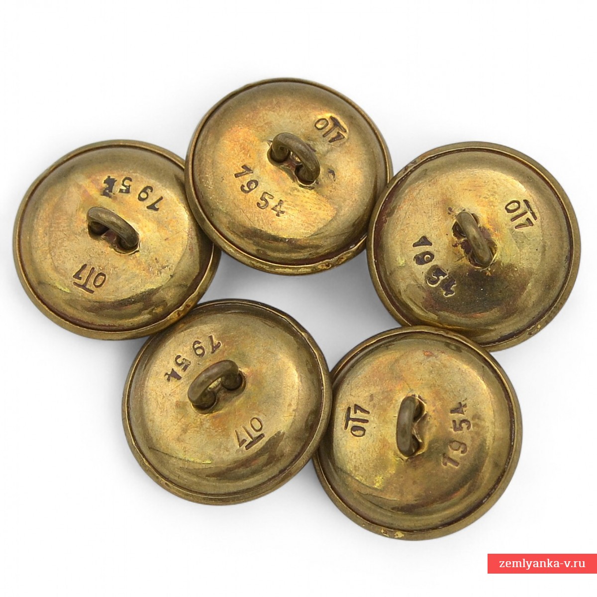 Лот включает в себя 5 пуговиц. На нпуговицах проставлен год изготовления – 1954. Сохранность складская. Гарантия подлинности.
