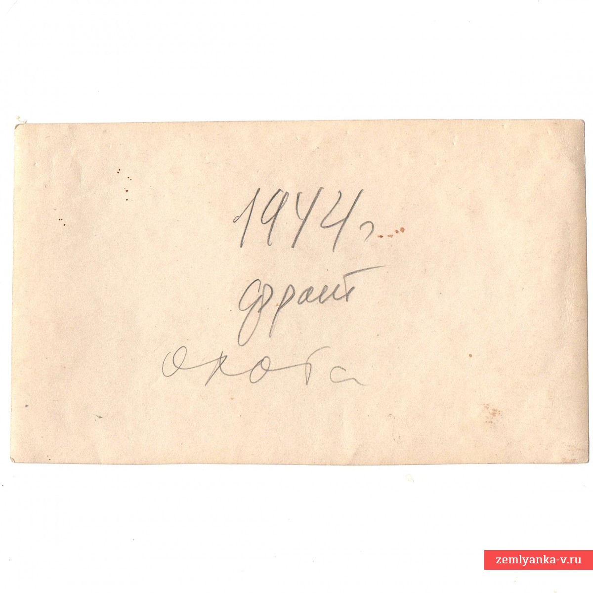 Оригинальный и достаточно редкий фронтовой снимок в неплохом коллекционном состоянии. На оборотной стороне надпись «Фронт 1944». На фото в центре командир полка гв. подполковник В.И. Дымченко, рядом – штурман полка майор М.П. Попов. Подробнее о командире полка здесь http://allaces.ru/p/people.php?id=29. Размер 100*165 мм. Из фронтового альбома М.П. Попова. Гарантия подлинности.