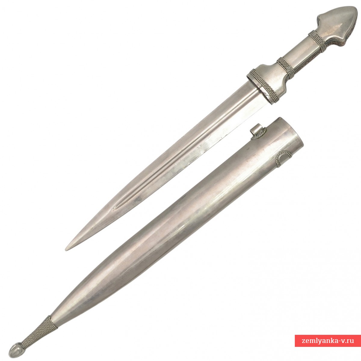 Современного изготовления кинжал в неплохом состоянии. Клинок изготовлен из немагнитного металла, покрытого никелем. В наличии только 1 шт.