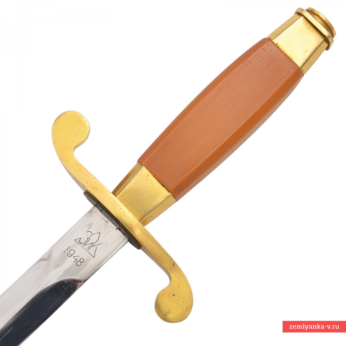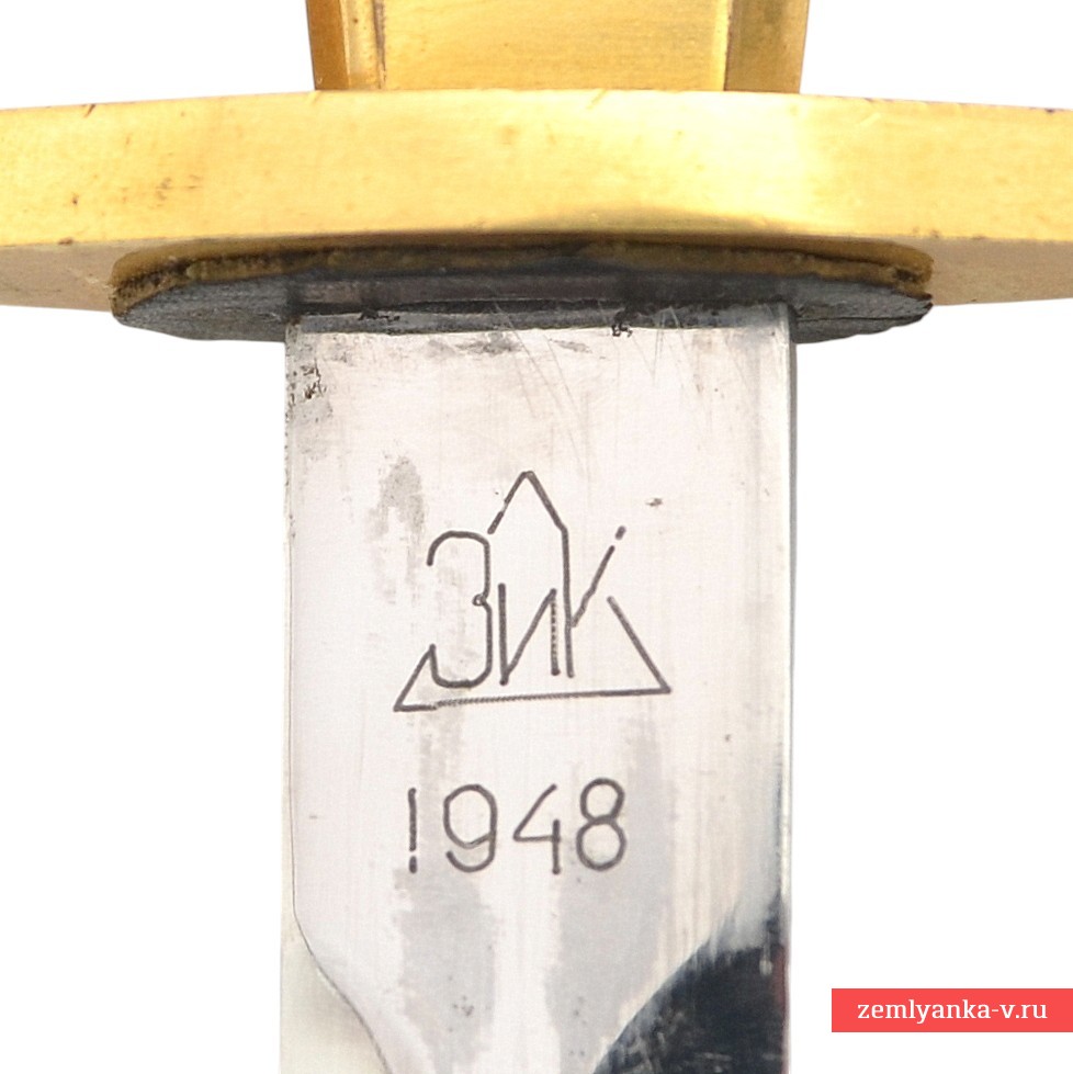 Клинок стальной, прямой, плоский, ромбического сечения, двулезвийный. На пяте клинка с одной стороны нанесён номер «NО7213»; с другой стороны клеймо производителя «ЗиК 1948». Эфес состоит из рукояти и крестовины. Рукоять прямая, из пластмассы, оранжевого цвета, бочкообразная, прямоугольного сечения, с фасками. Сверху и снизу имеются конические втулки. На верхней втулке расположено изображение Государственного герба СССР. Сверху на хвостовик клинка навинчивается прямоугольная гайка со слабо выступающим рельефным изображением пятиконечной звезды на круглом щите. Крестовина прямая, плоская, с загнутыми в разные стороны закругленными окончаниями. На крестовине прослеживается клеймо приемки в виде литеры «Г» в ромбе. Ножны деревянные, покрыты черной кожей. Прибор ножен латунный, с зубчатыми краями, состоит из устья, обоймицы и наконечника. На устье с одной стороны нанесено изображение якоря, с другой стороны парусного корабля. На устье и гайке имеются подвижные кольца для ремней портупеи. На приборе ножен имеются клейма приемки в виде небольших ромбов. Кортик комплектуется пасовыми подвесами для портупеи образца 1947 года (тип «злые львы»).