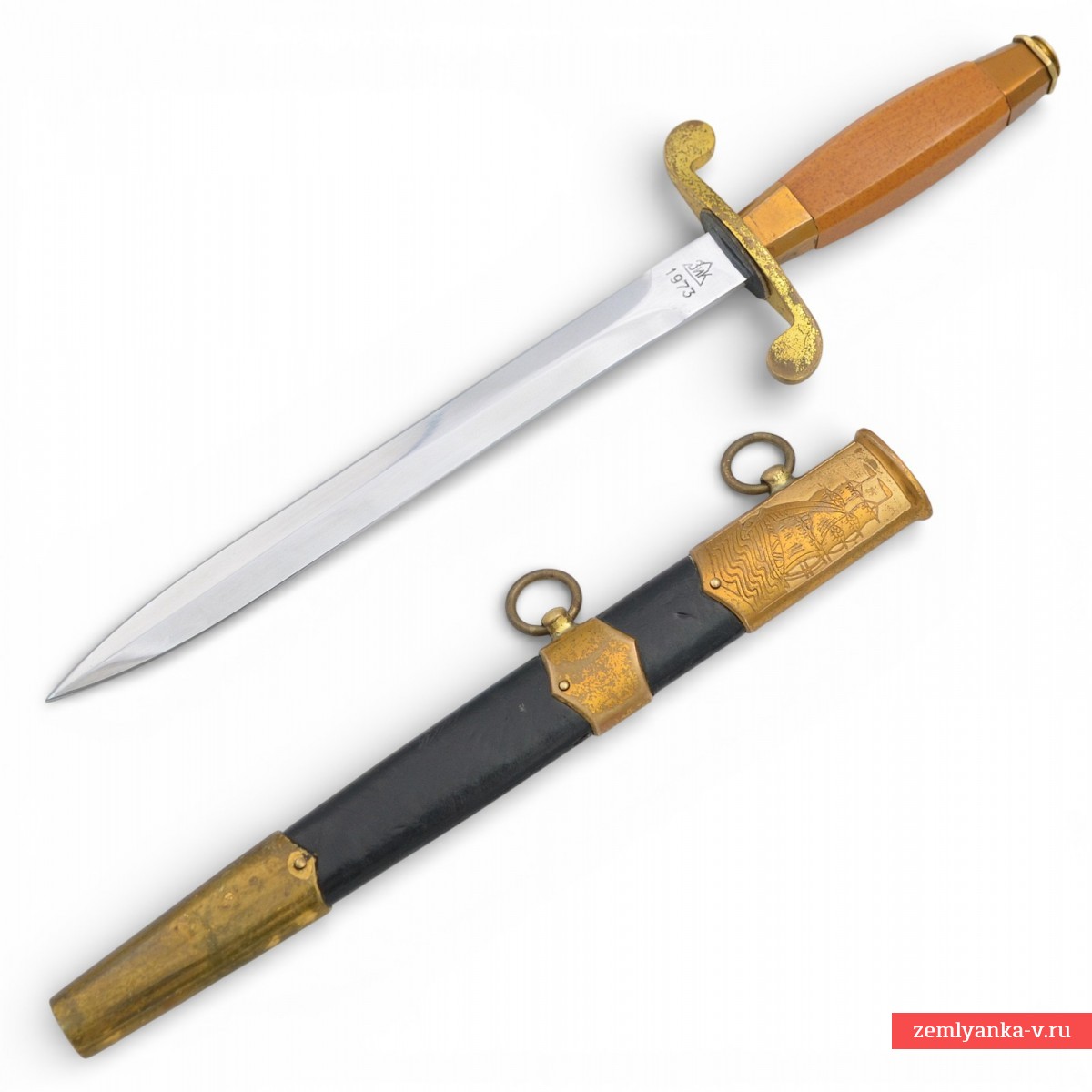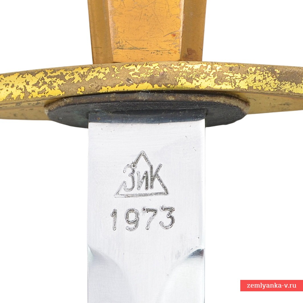 Клинок стальной, прямой, плоский, ромбического сечения, двулезвийный. На пяте клинка с одной стороны нанесён номер «14164»; с другой стороны клеймо производителя «ЗиК 1973». Эфес состоит из рукояти и крестовины. Рукоять прямая, из пластмассы, оранжевого цвета, бочкообразная, прямоугольного сечения, с фасками. Сверху и снизу имеются конические втулки. На верхней втулке расположено изображение Государственного герба СССР. Сверху на хвостовик клинка навинчивается прямоугольная гайка со слабо выступающим рельефным изображением пятиконечной звезды на круглом щите. Крестовина прямая, плоская, с загнутыми в разные стороны закругленными окончаниями. Ножны деревянные, покрыты черной кожей. Прибор ножен латунный, с зубчатыми краями, состоит из устья, обоймицы и наконечника. На устье с одной стороны нанесено изображение якоря, с другой стороны парусного корабля. На устье и гайке имеются подвижные кольца для ремней портупеи. Кортик комплектуется ремнем и пасовыми подвесами для портупеи.