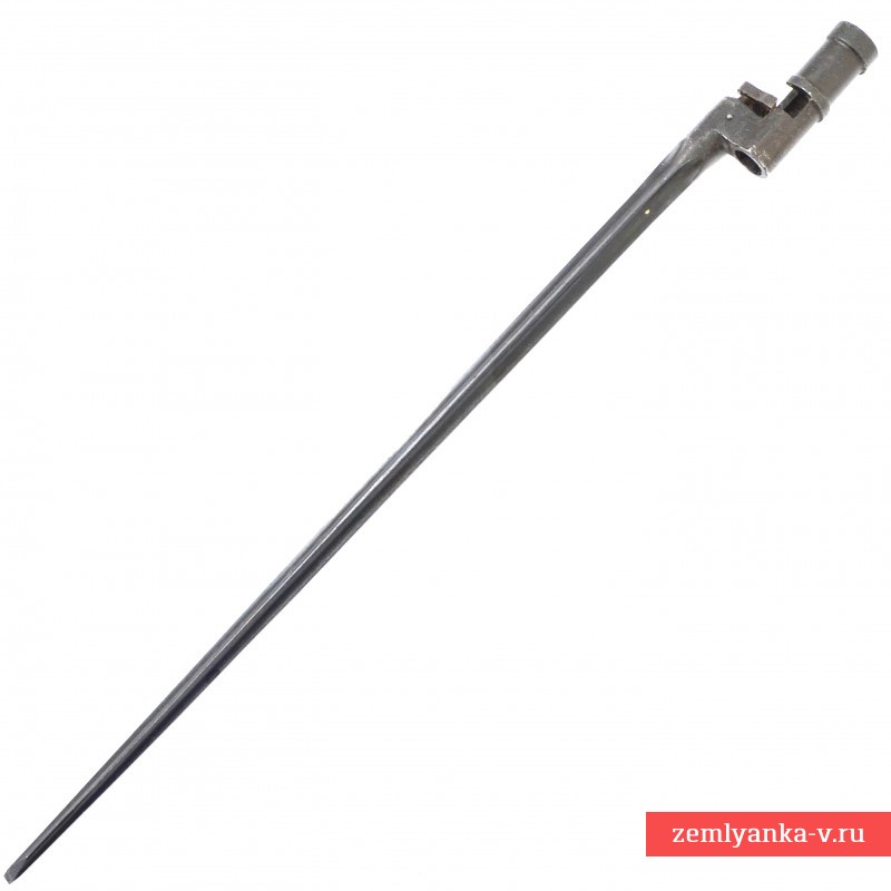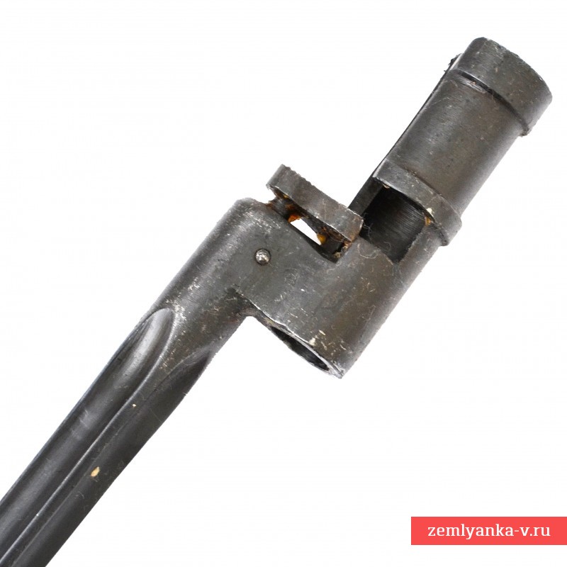 Оригинальный штык в прекрасном складском состоянии. В войска не поступал, хранился на складе НКО, позже — Министерства обороны СССР, вследствие чего не получил набивку номера в соответствии с номером винтовки. Клинок игольчатого типа, прямой, четырёхгранный, c долами на всех гранях. Острие клинка срезано в виде отвертки. Трубка с Г-образной прорезью идущей сверху налево. Задний конец трубки утолщен. Шейка короткая, четырехгранная. На шейке пробиты плохо читаемые клейма инспекторской приёмки. В основании клинка вмонтирована пружинная защелка, фиксирующая штык при примыкании за основание мушки. Гарантия подлинности.