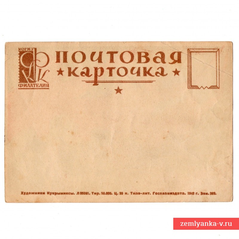 Оригинальная и достаточно редкая открытка времен Великой Отечественной войны в прекрасном коллекционном состоянии. Не заполнена. Тираж 50000 штук. Гарантия подлинности.