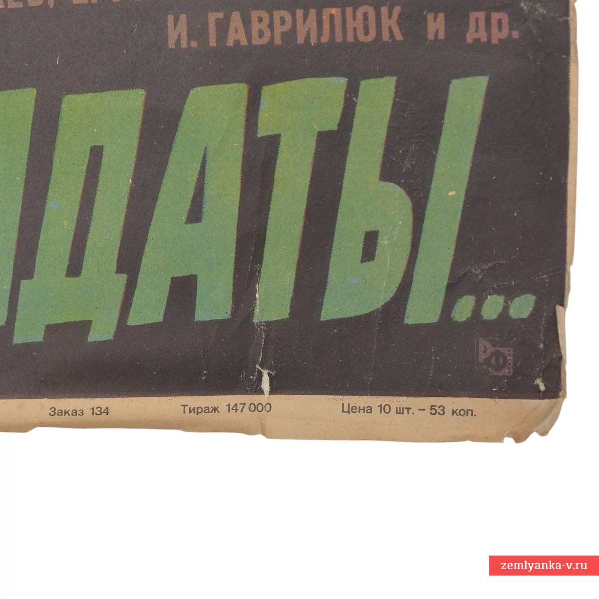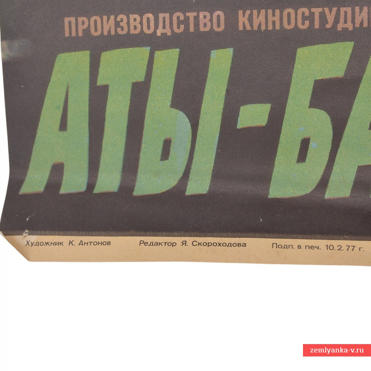 «Аты-баты, шли солдаты…» — советский художественный фильм 1977 года, последняя режиссерская работа Леонида Быкова и его последняя роль в кино. Плакат работы художника Константина Михайловича Антонова (1924–2010).