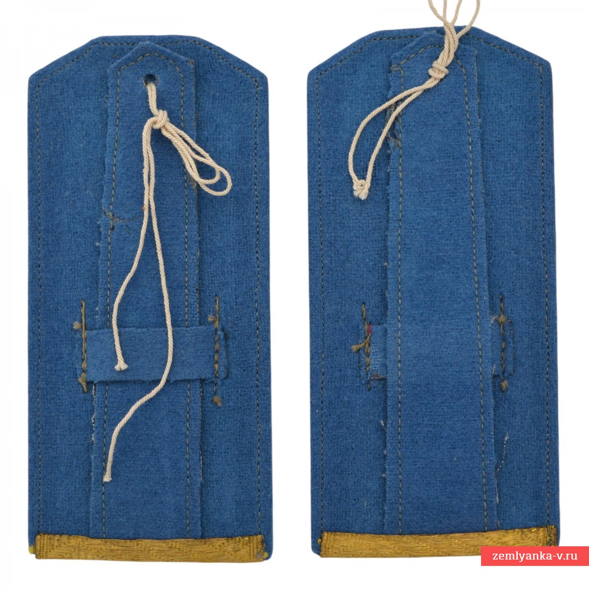 Сукно голубого цвета, золотой галун. Пара оригинальных погон в прекрасном неношеном коллекционном состоянии. Рост 2. Погоны этого типа были введены указом Президиума Верховного Совета СССР 06.01.1943 «О введении новых знаков различия для личного состава Красной Армии». Пуговицы с гербом на 11 лент. Гарантия подлинности.