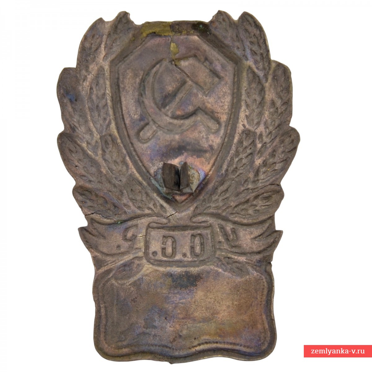 Латунь, штамповка. Оригинальный знак в хорошем для предмета из земли состоянии. Утвержден приказом Милиции Республики № 180 от 20.03.1923 г. Лаковое покрытие щита и ленты утрачено. Размер знака 44*65 мм. Гарантия подлинности.