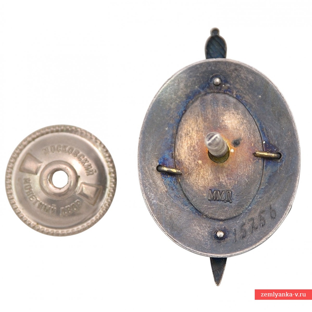 Оригинальный знак в прекрасном состоянии. Бронза, эмаль, серебрение. Знак представляет собой овальный щит красной эмали с наложенным на него серебристого цвета мечом с золотой рукоятью. На меч в центре знака наложены позолоченные серп и молот. В нижней части знака вдоль золотистого цвета ободка щита — лента красной эмали с надписью в центральной части «МВД». На оборотной стороне номер награждения 15256. Гарантия подлинности. Редкий.