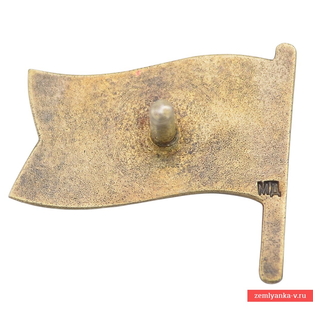 Серебро, эмаль. Оригинальный знак в неплохом коллекционном состоянии. Закрутка отсутствует. Фрагментарная реставрация эмали. Редкий. Гарантия подлинности.