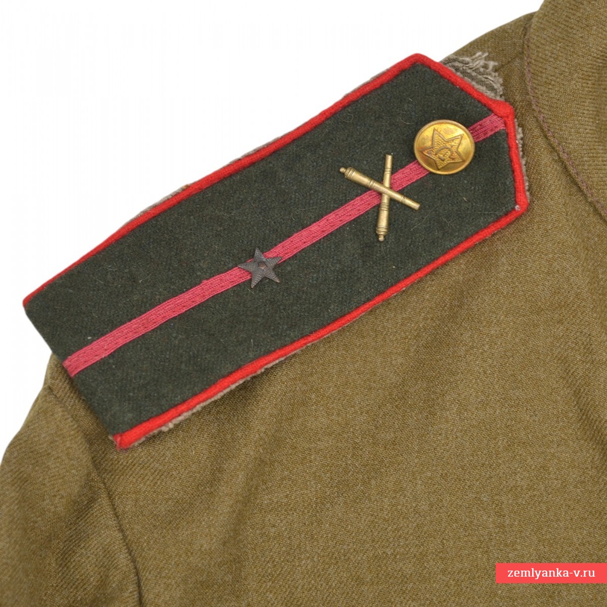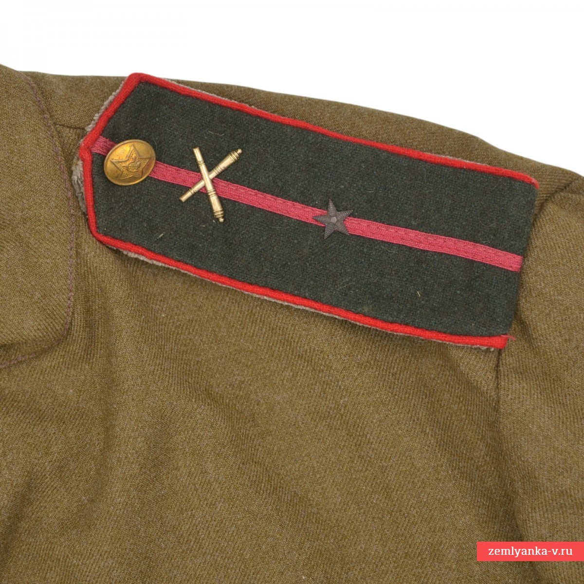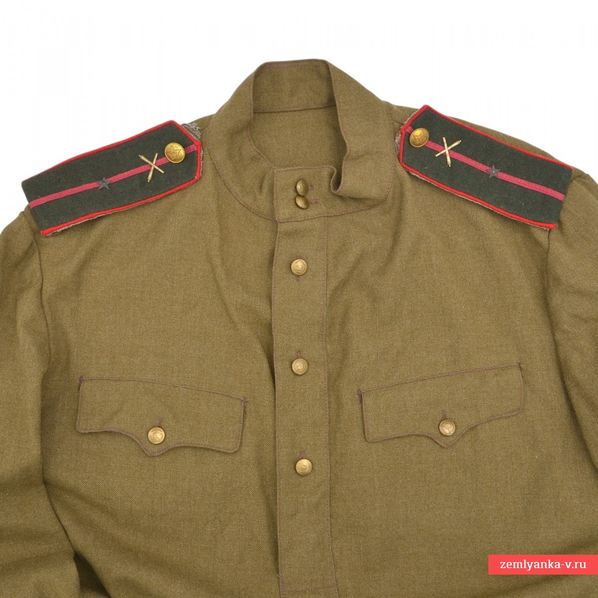 Достаточно редкая и интересная улучшенная гимнастёрка образца 1943 г. с погонами младшего лейтенанта артиллерии РККА, изготовленная из качественной шерстяной ленд-лизовской ткани. Пуговицы редкого штампа пришиты оригинально при производстве. Погоны суконные, изготовлены по ТУ 1943 года. Звезды и эмблемы артиллерии оригинальные, установлены уже нами. Размер большой (50-52). Отличный коллекционный экземпляр униформы РККА военного периода в прекрасном состоянии. Показанные на фото ремень и кобура в комплект не входят, но могут быть приобретены отдельно. Гарантия подлинности.