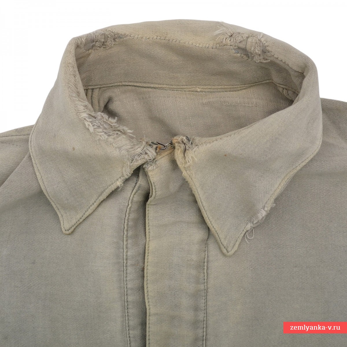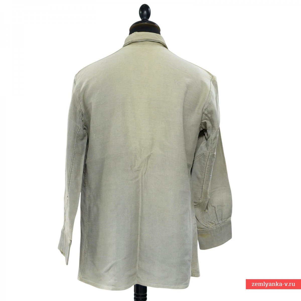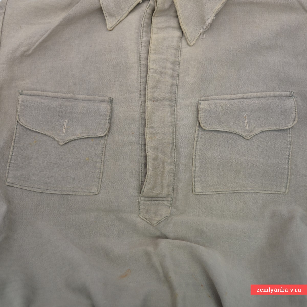 Достаточно редкая в последнее время оригинальная гимнастерка в удовлетворительном коллекционном состоянии. Размер 46-48. Ткань из-за многочисленных стирок получила сероватый оттенок. Повреждения ткани в районе воротника. Налокотники установлены в соответствии с приказом 1931 года. Приятное ношеное состояние, в отличие от предметов складского сохрана, данная гимнастерка с большой долей вероятности участвовала в боях ВОВ. Введена приказом РВС СССР № 190 от 19 июля 1929 года. Отменена приказом Наркома Обороны СССР № 25 от 15 января 1943 года. Гарантия подлинности.