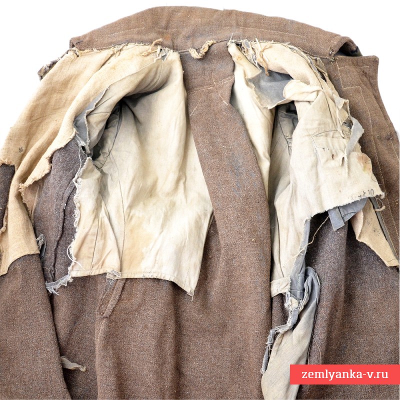 Оригинальная и очень редкая в последнее время датированная шинель в неплохом коллекционном состоянии. Введена приказом РВС СССР №733 от 18 декабря 1926 года. Шинель однобортная из шинельного сукна серо-коричневого цвета. Воротник отложной. Застежка потайная на пяти крючках. Карманы долевые прорезные без клапанов. Рукава с настроченными прямыми обшлагами. Сзади складка оканчивается шлицей. Хлястик шинели отсутствует. На подкладке ряд штампов производителя, среди которых читается датирующий – 1944. Подкладка имеет множественные надрывы, нуждается в штопке. Шинель укомплектована оригинальными погонами старшины инженерных войск РККА с оригинальными же полевыми шинельными петлицами, поставленными уже нами. Ремень в комплект не входит. Размер 46-48. Датированные периодом ВОВ предметы униформы крайне редки в наше время. Данная шинель может стать отличным дополнением любой частной или музейной экспозиции как полностью оригинальный предмет зимней униформы Красной армии.