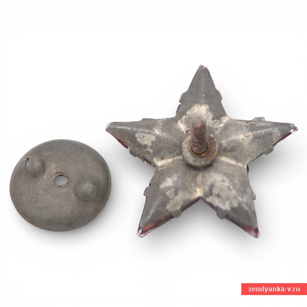 Белый металл, стекло. Звезды подобного «патриотического» типа выпускались как в белом металле, так и в серебре, оттенки стекла также могли отличаться. Часто носились на лацканах пиджаков гражданским населением или особенно «мажористыми» военными на фуражках, о чем свидетельствуют множественные фото тех лет. Гарантия подлинности. Оригинальная закрутка в комплекте.