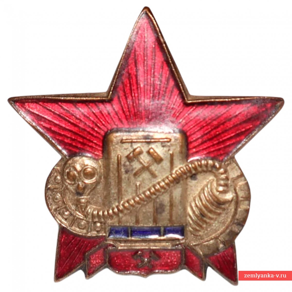 Оригинальная и достаточно редкая кокарда в прекрасном состоянии. Размер по лучам 33 мм. Использовалась сотрудниками горноспасательных служб, основной задачей которых было спасение шахтеров. Красная пятиконечная звезда с наложенным изображением горноспасательного снаряжения: противогаза (изолирующего дыхательного аппарата) с гофрированным шлангом и скрещенных молота и кирки — традиционных символов горного дела. Латунь, горячая эмаль, гильоше. Оригинальные усы крепления. Гарантия подлинности.